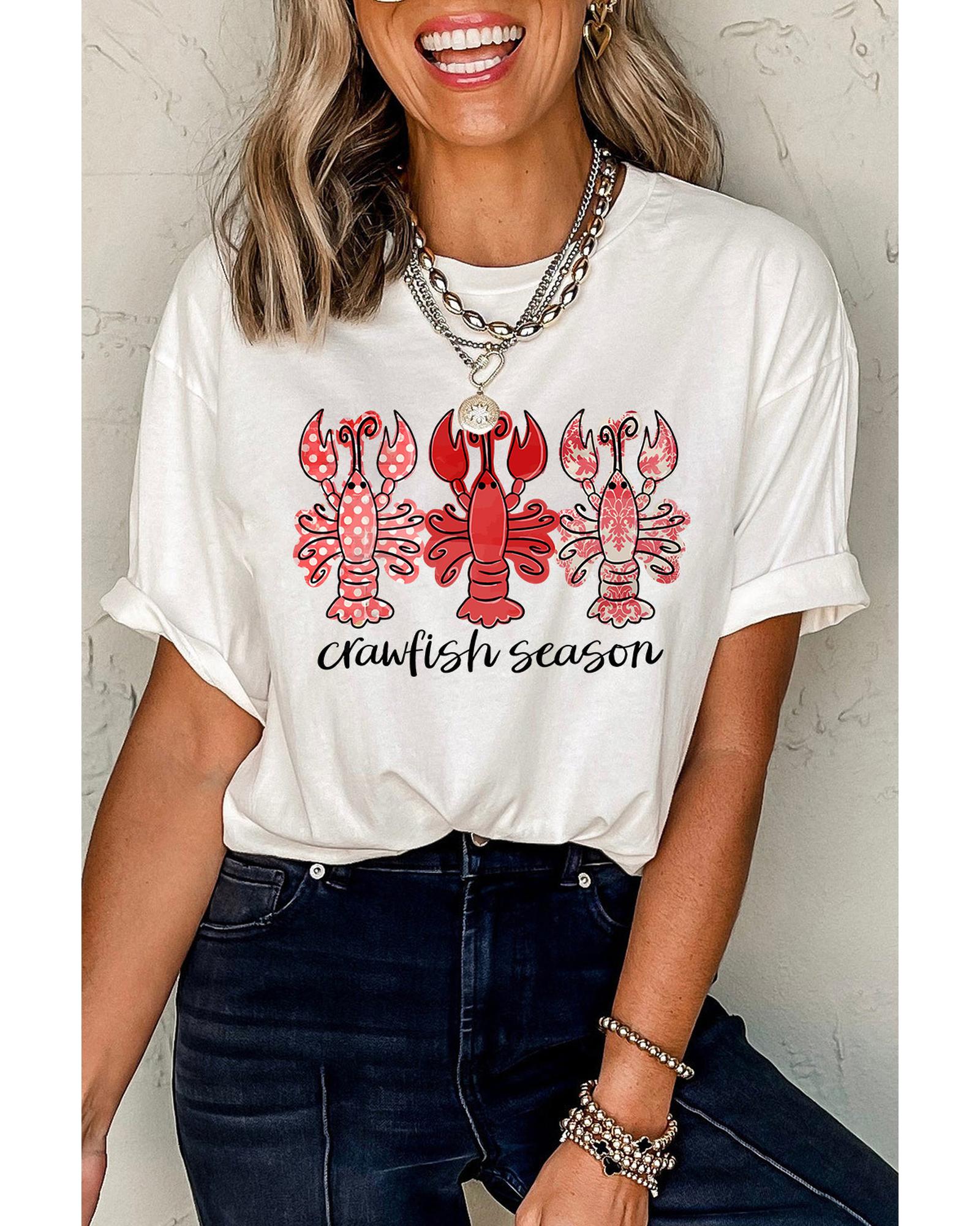 White Crawfish Season Fashion Graphic Crewneck T Shirt – M