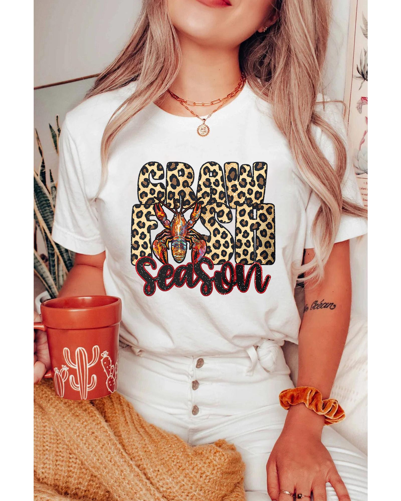 White Crawfish Season Leopard Letter Graphic Tee – 3XL