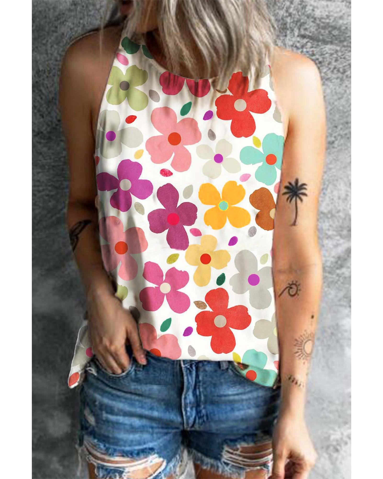 White Cute Floral Print Vest – L