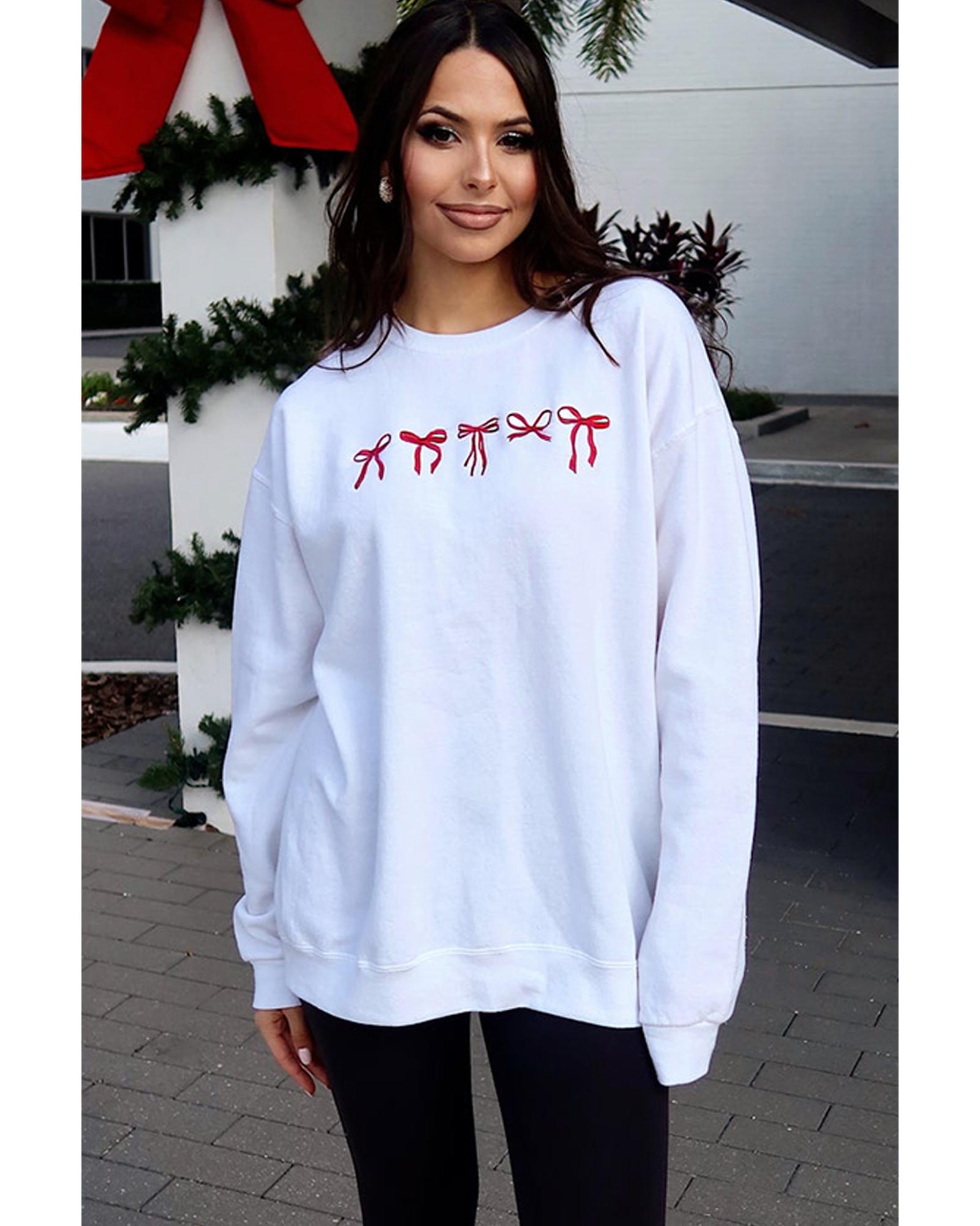 • White Diverse Bow Embroidery Drop Shoulder Sweatshirt