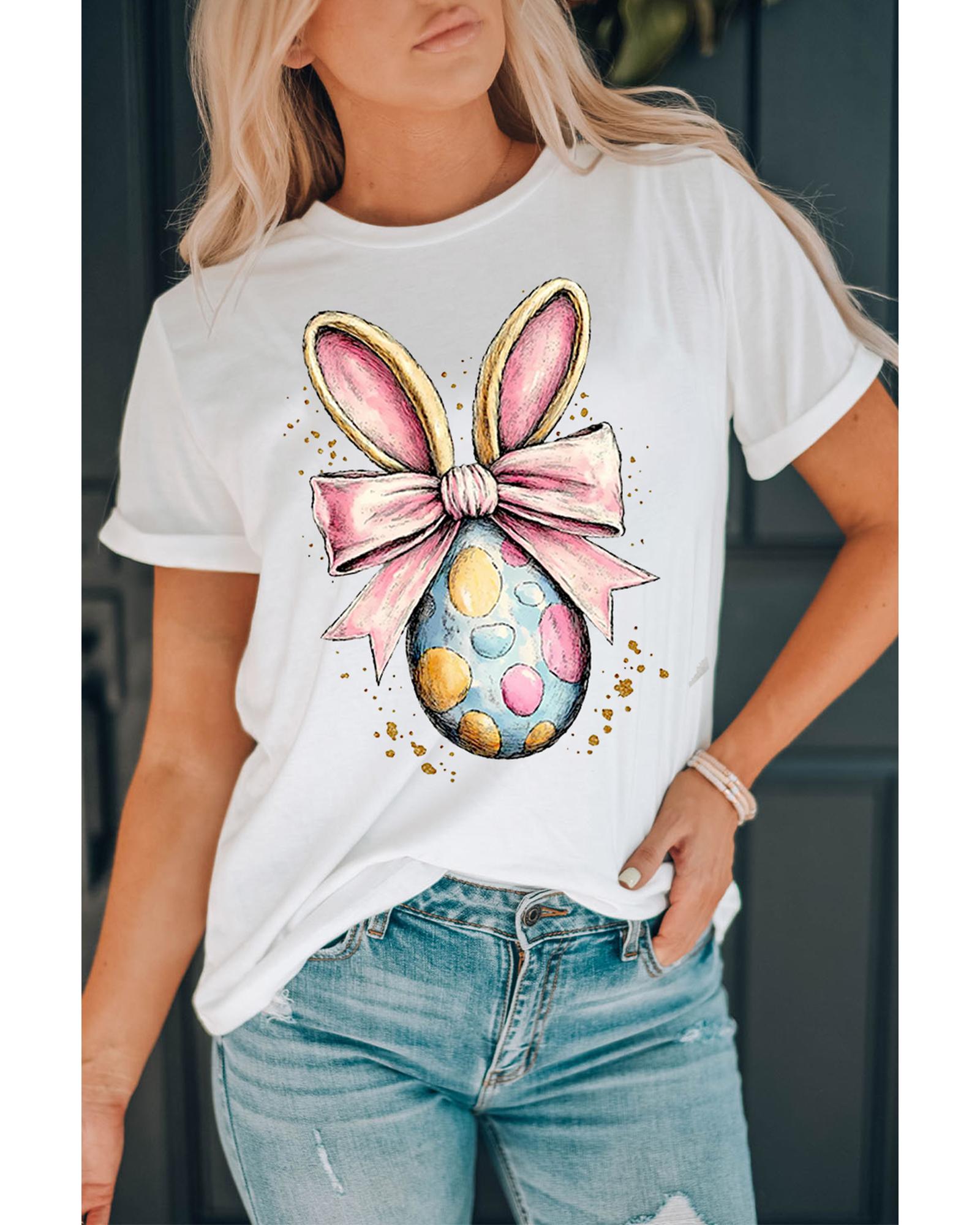 White Easter Egg Bow Bunny Ear Printed T Shirt – M
