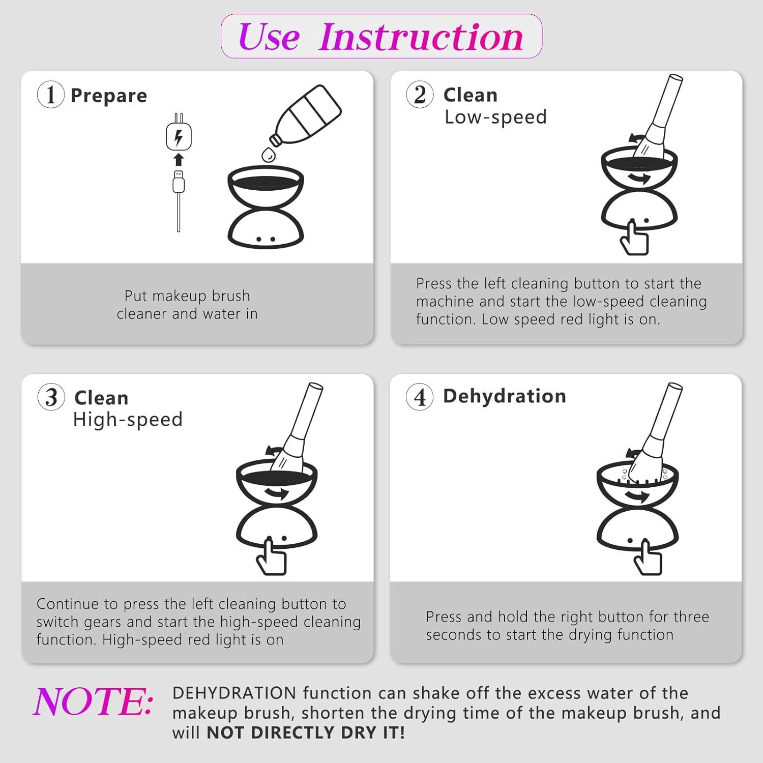 - Fast Cleaning & Drying: Cleans and dries makeup brushes in just 30 seconds.