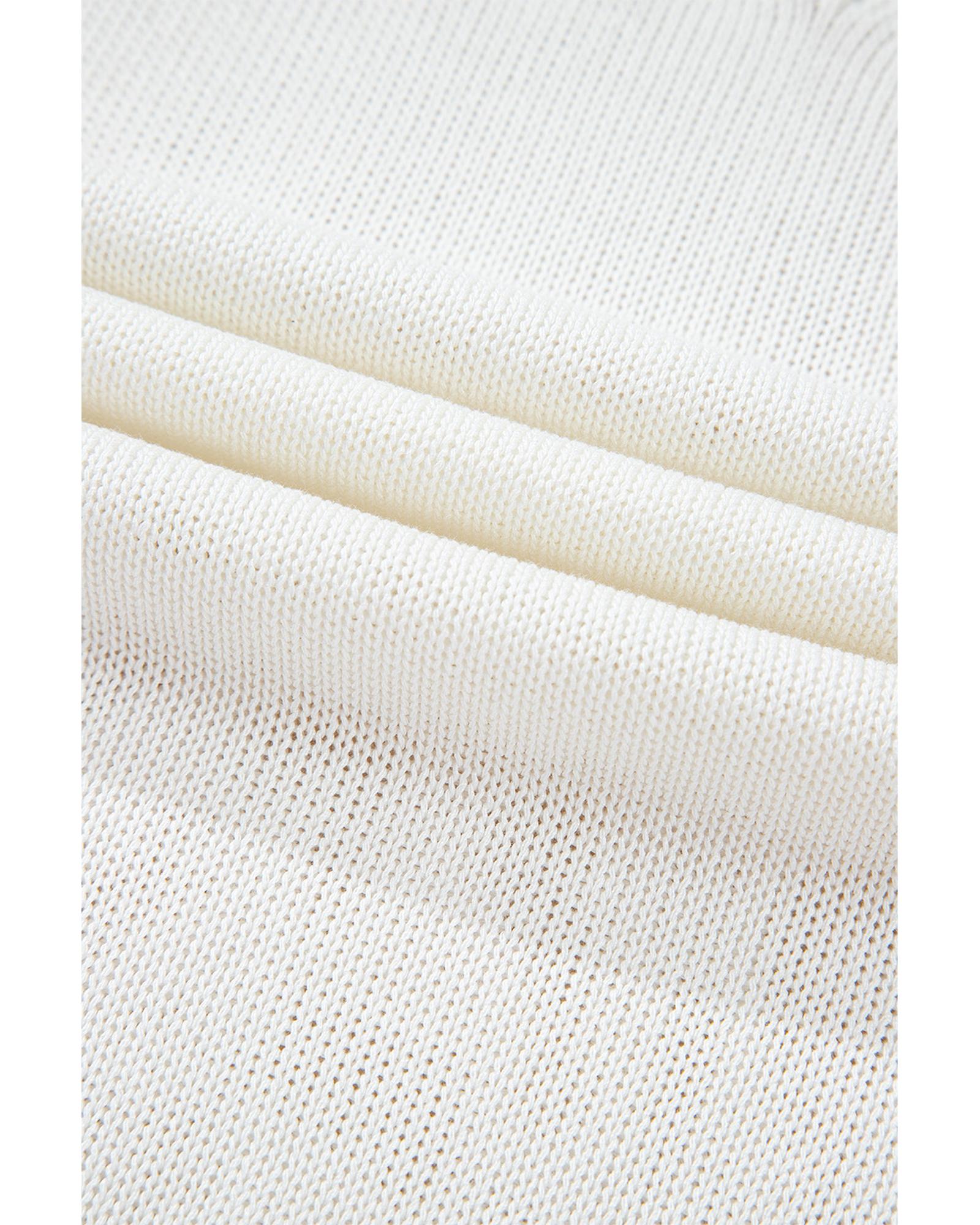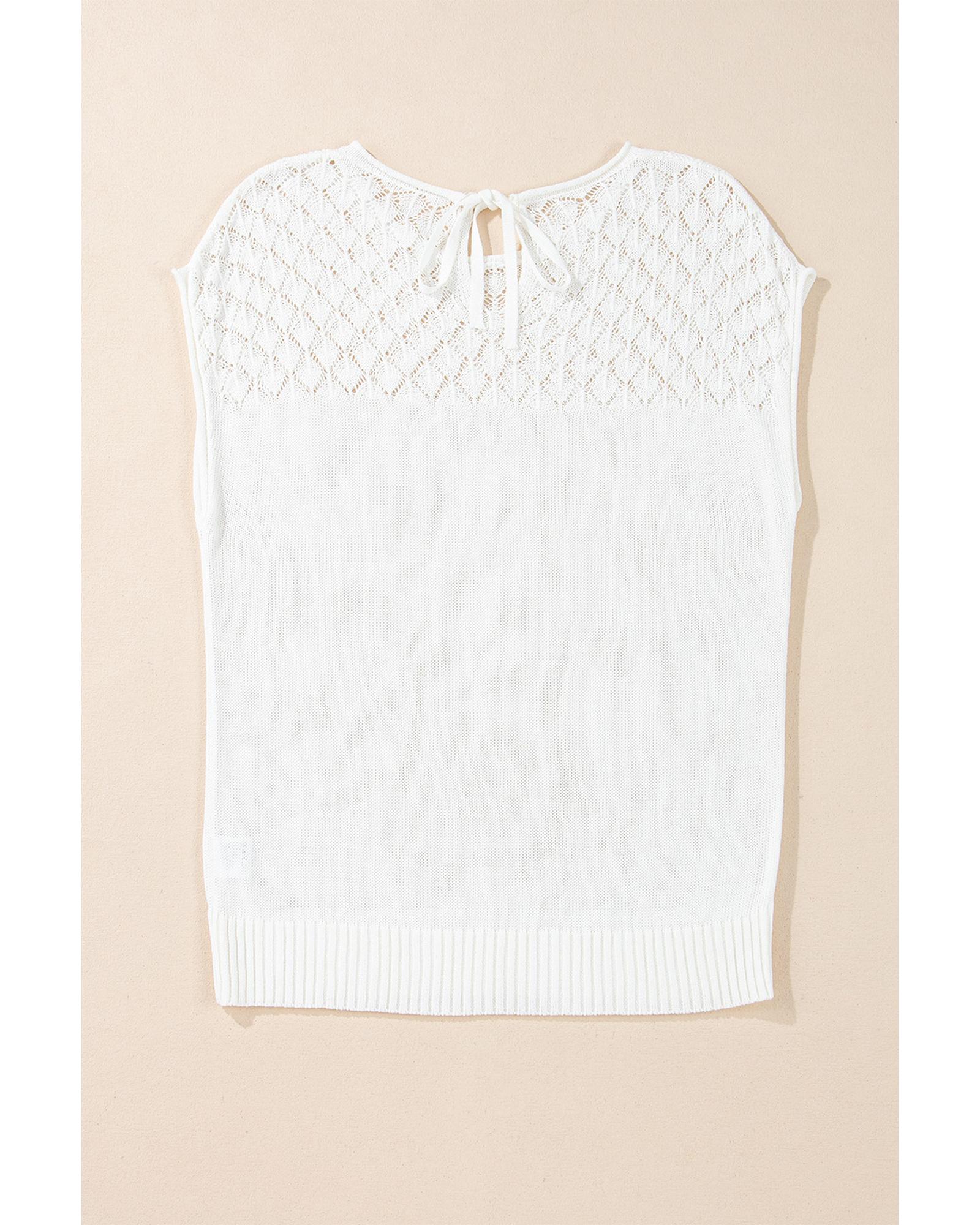 - White eyelet knit short sleeve sweater