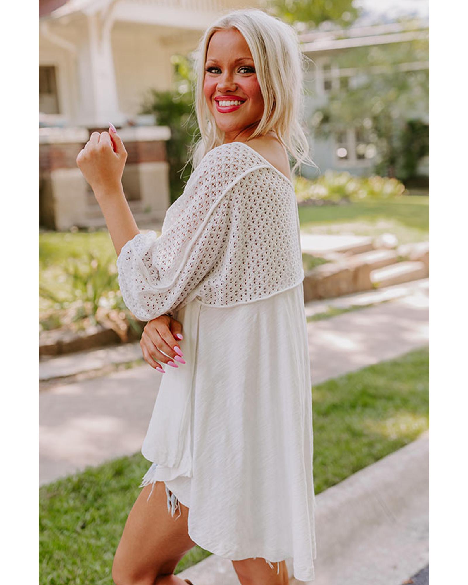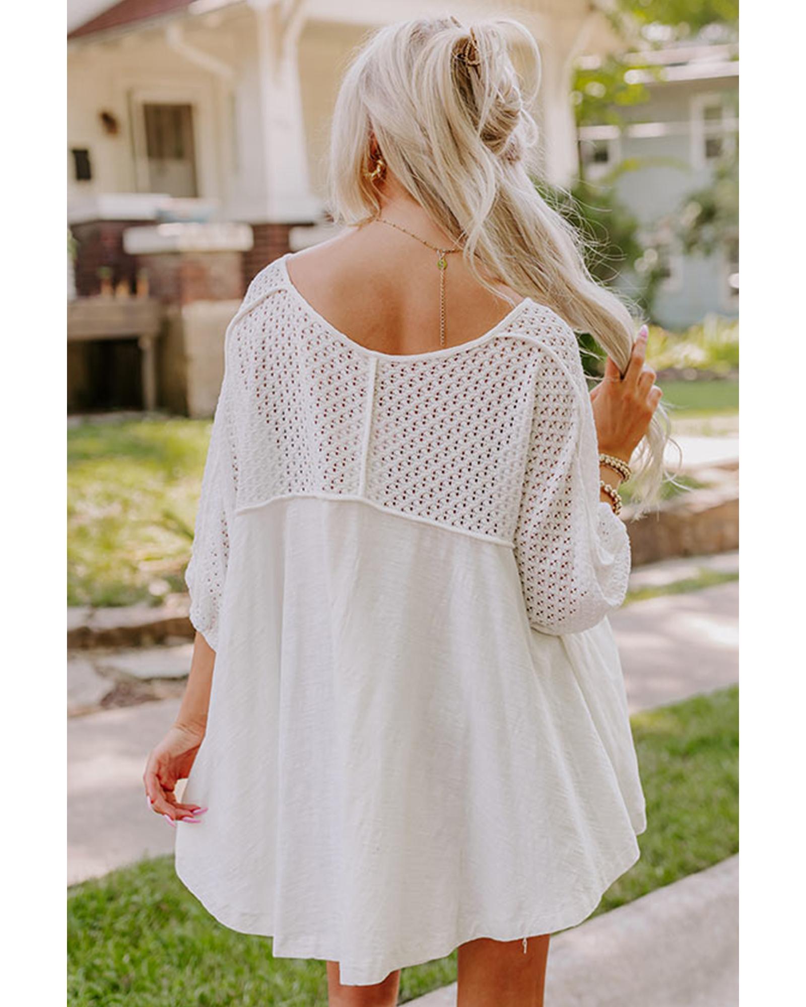 - White eyelet patchwork oversized top