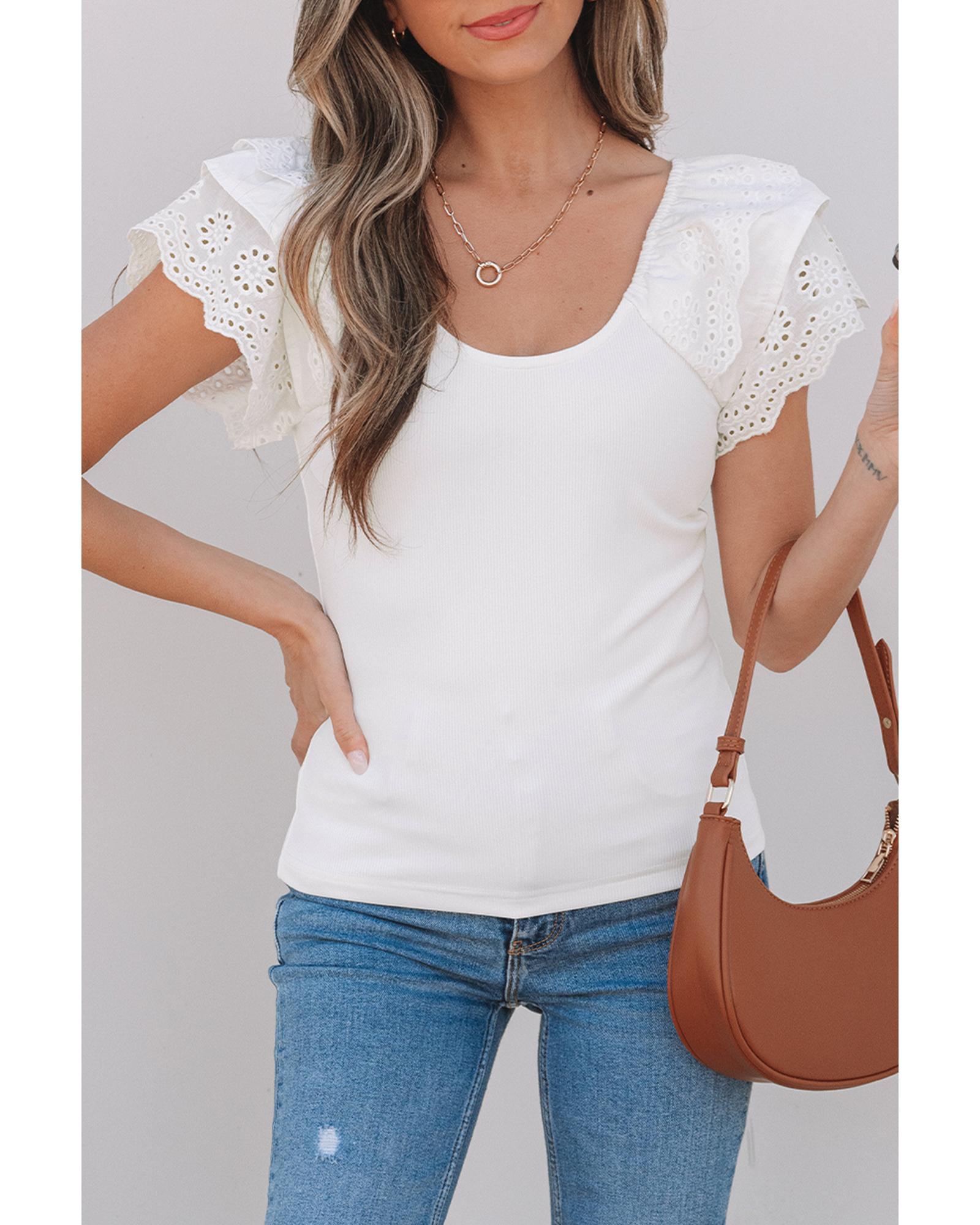 White Eyelet Ruffle Sleeve Slim Fitted Top – 2XL