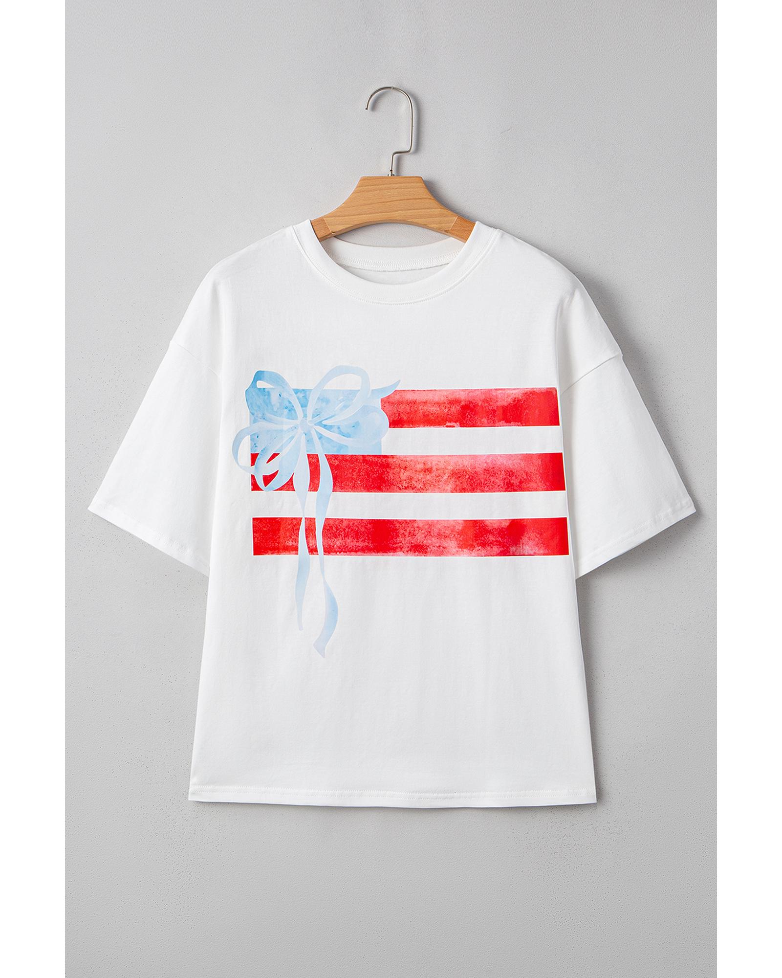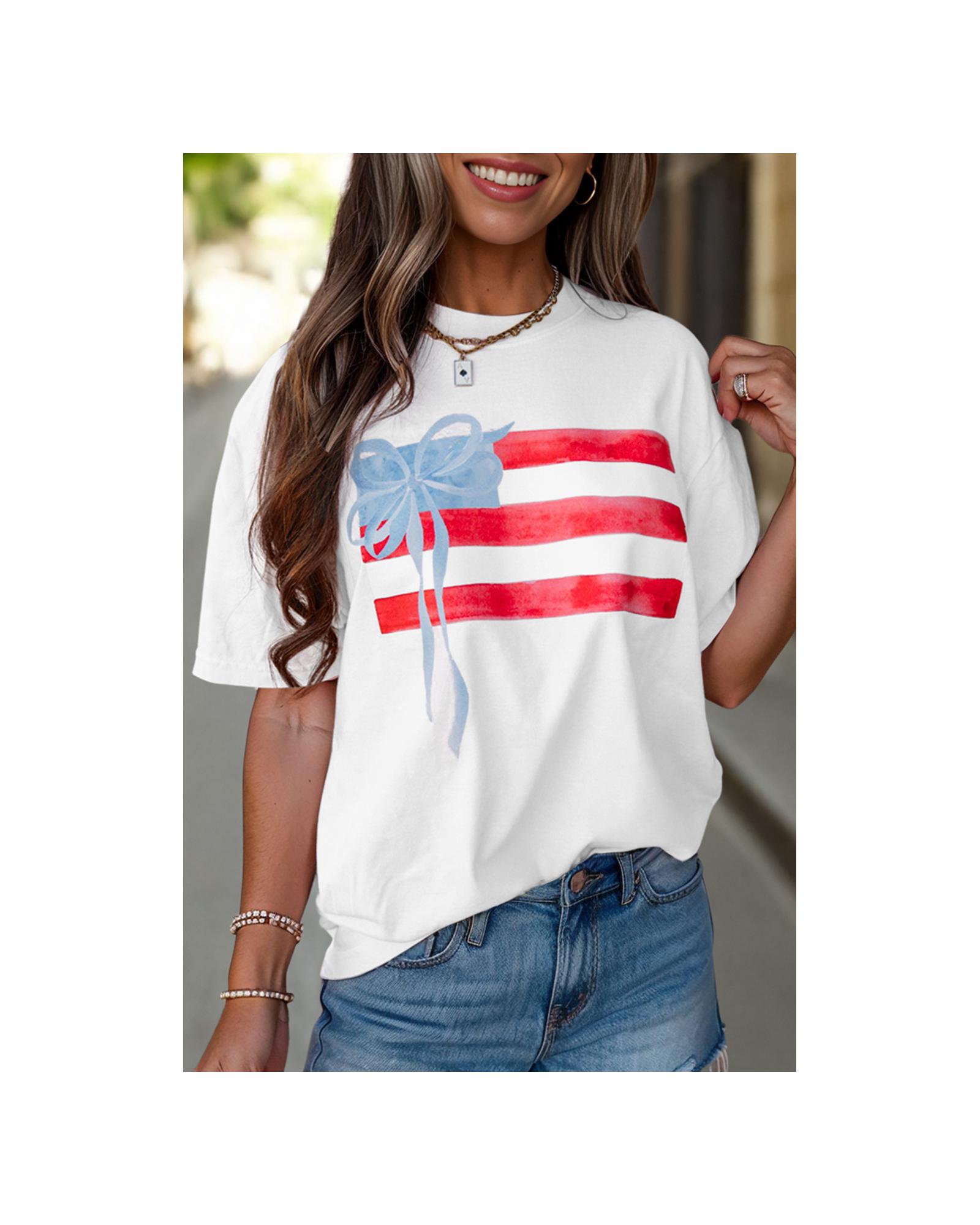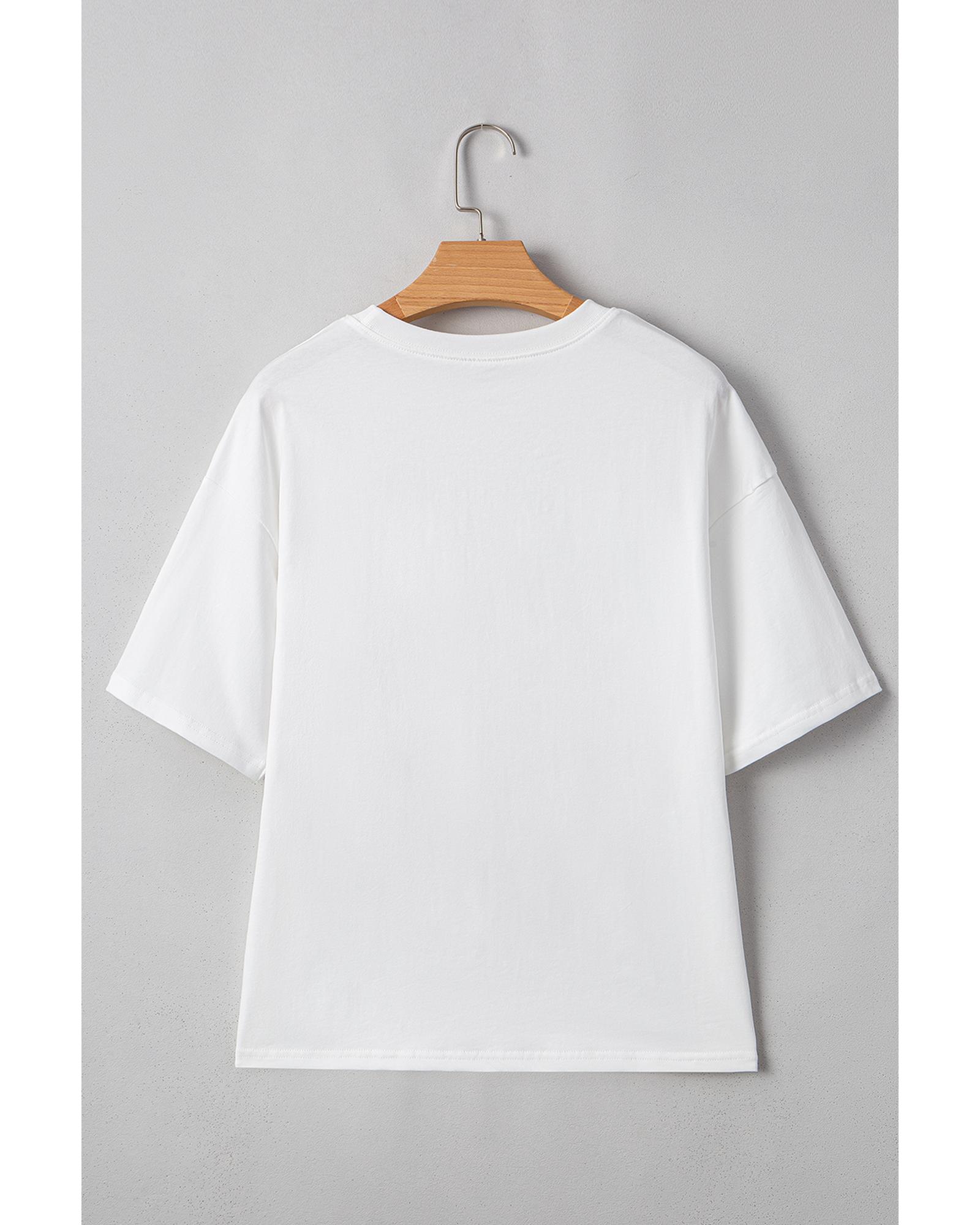 White Bowknot Rugby Football Printed Game Day T Shirt - XL