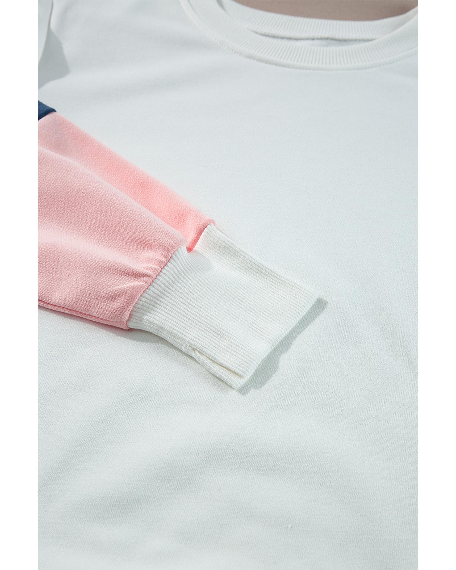 White French Terry Color Block Long Sleeve Top – S