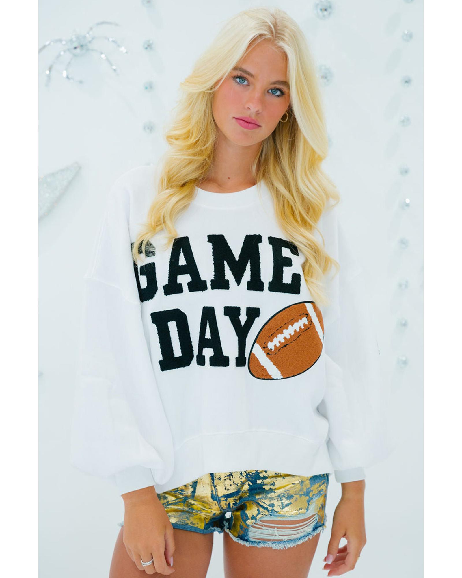 White GAME DAY Graphic Varsity Pullover Sweatshirt – 2XL