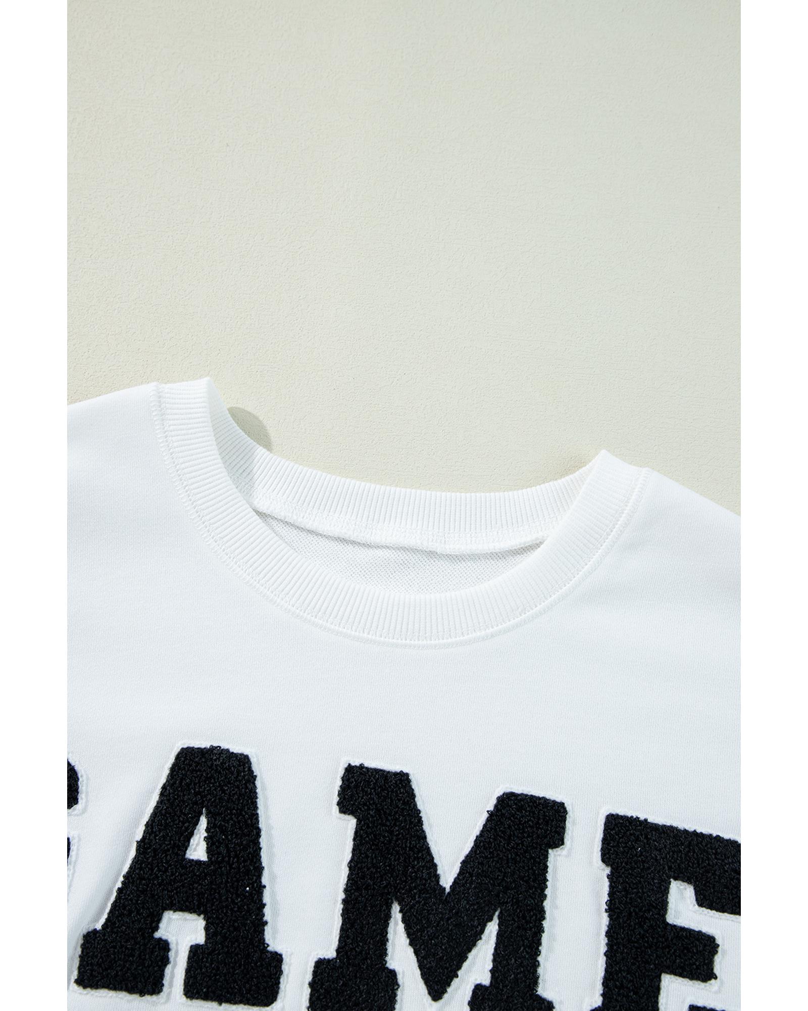 White GAME DAY Graphic Varsity Pullover Sweatshirt – M