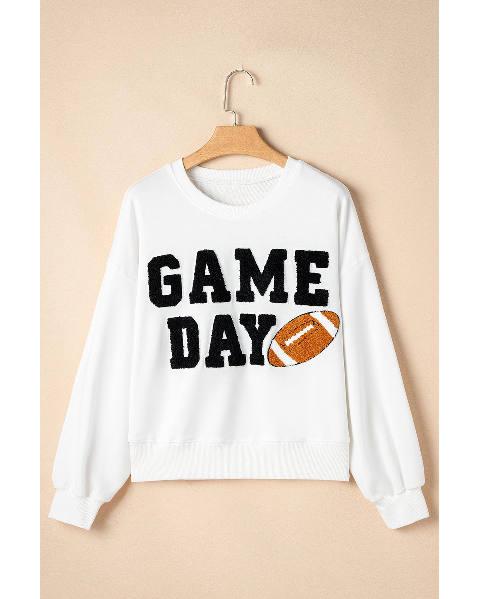 White GAME DAY Graphic Varsity Pullover Sweatshirt – XL