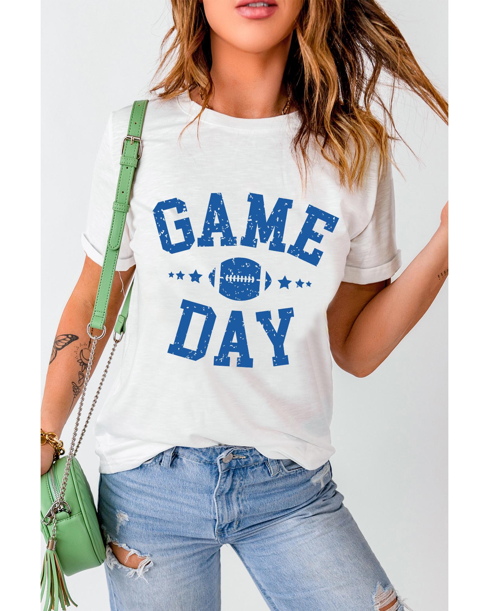 • White GAME DAY Rugby Football Graphic Crewneck T