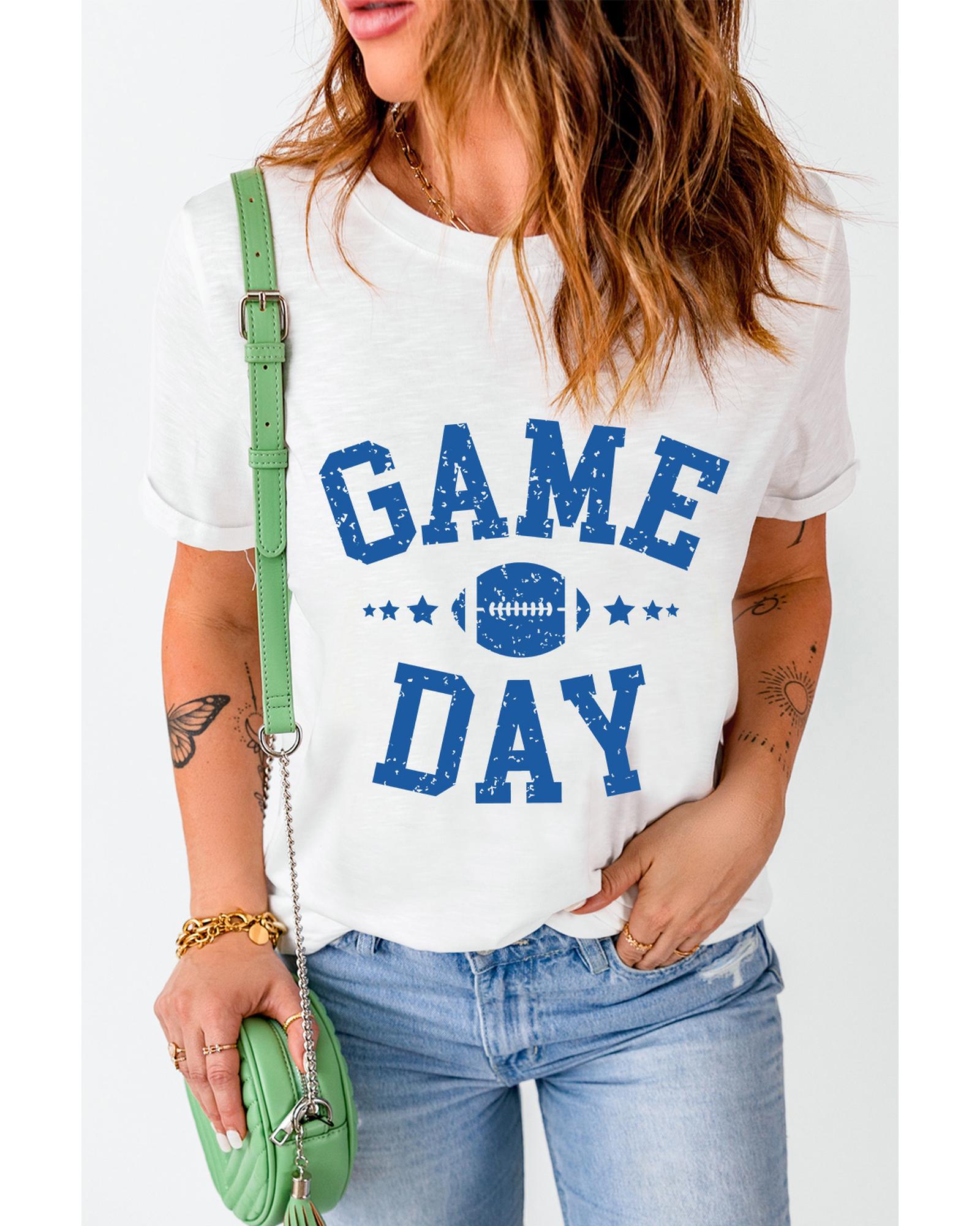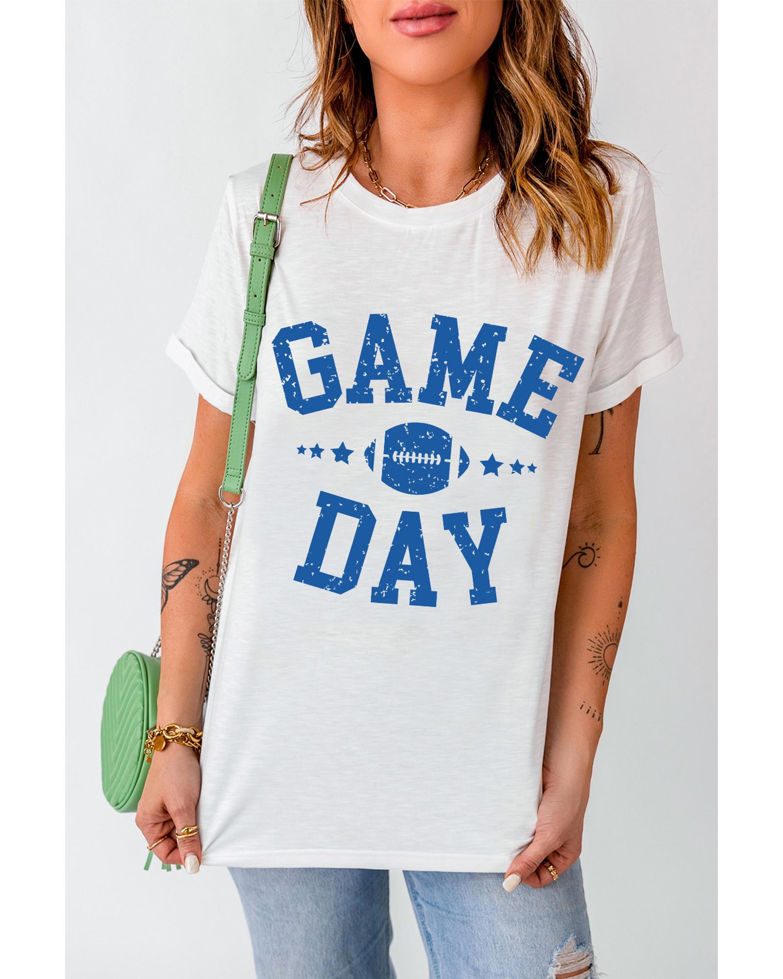 - White GAME DAY Rugby Football Graphic Crewneck T