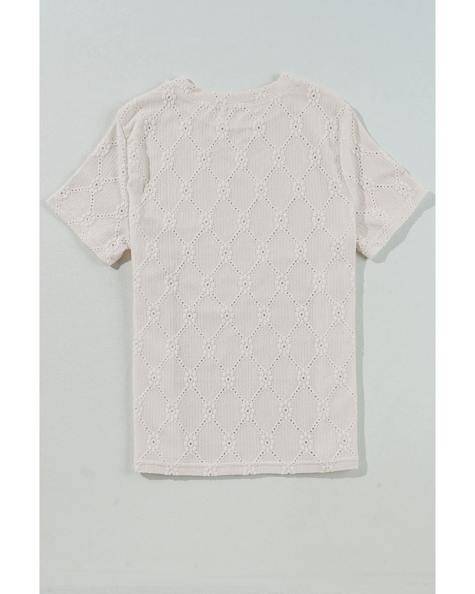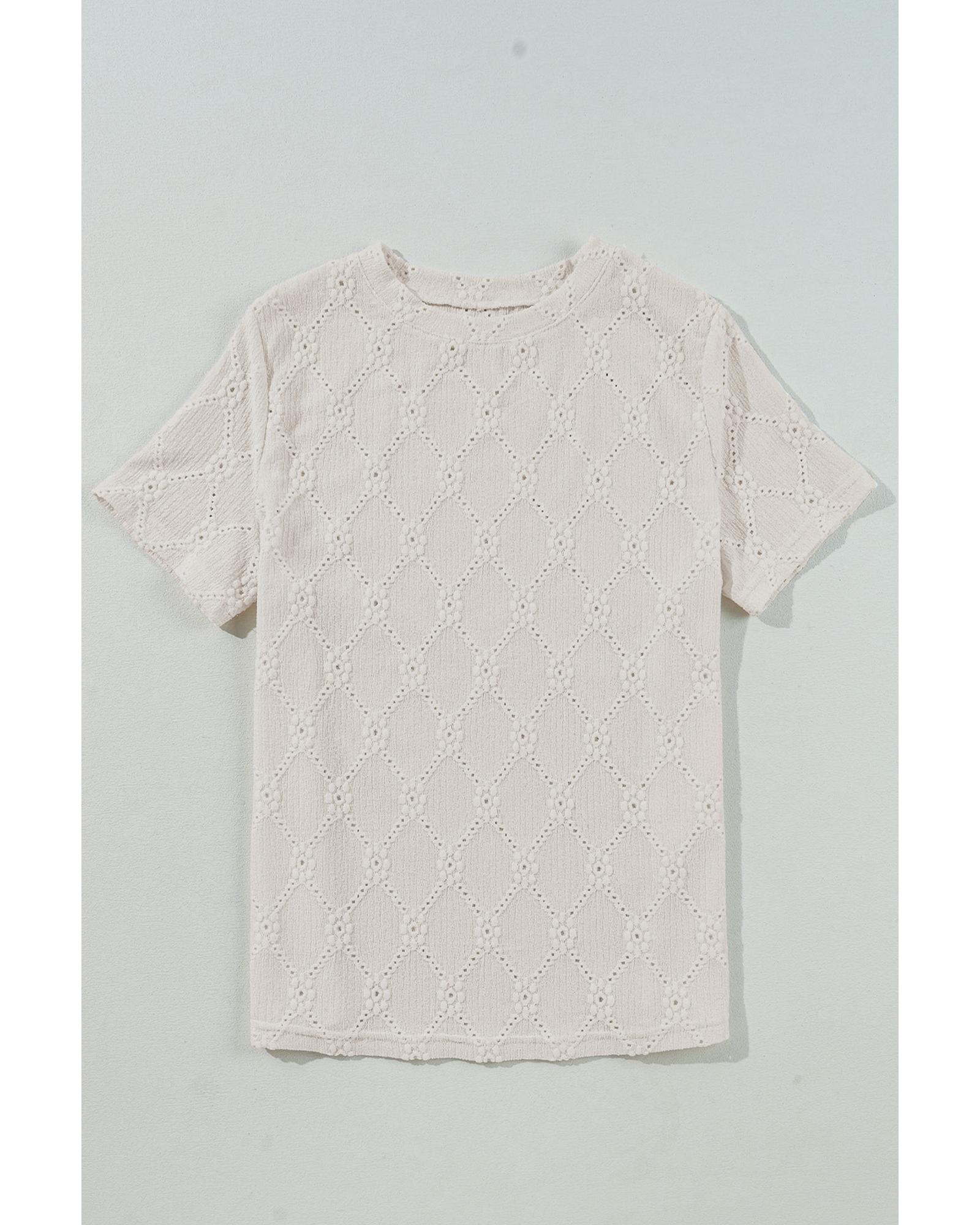 White Geometric Embroidered Slim Fit O Neck T Shirt – XL