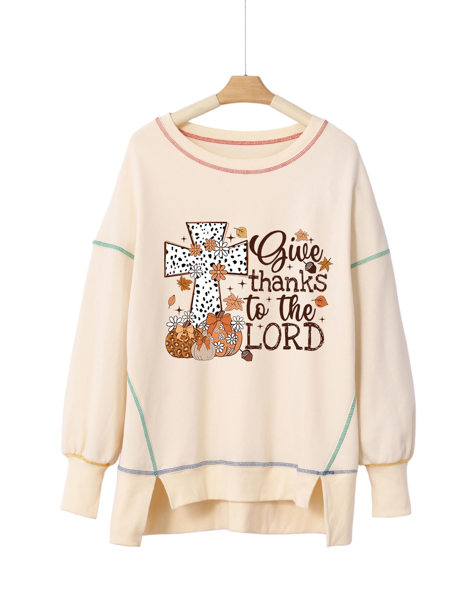 White Give Thanks to the LORD Graphic High Low Hem Loose Sweatshirt – L