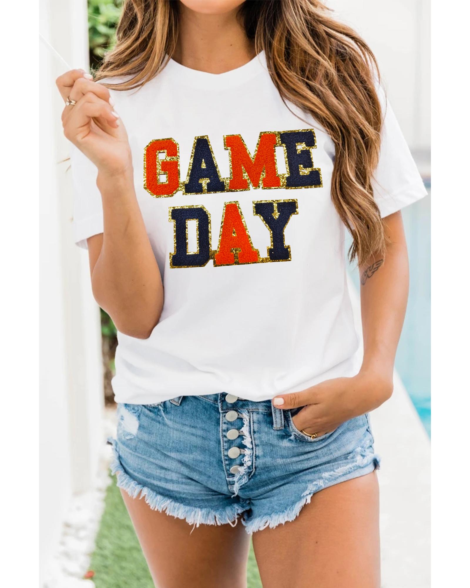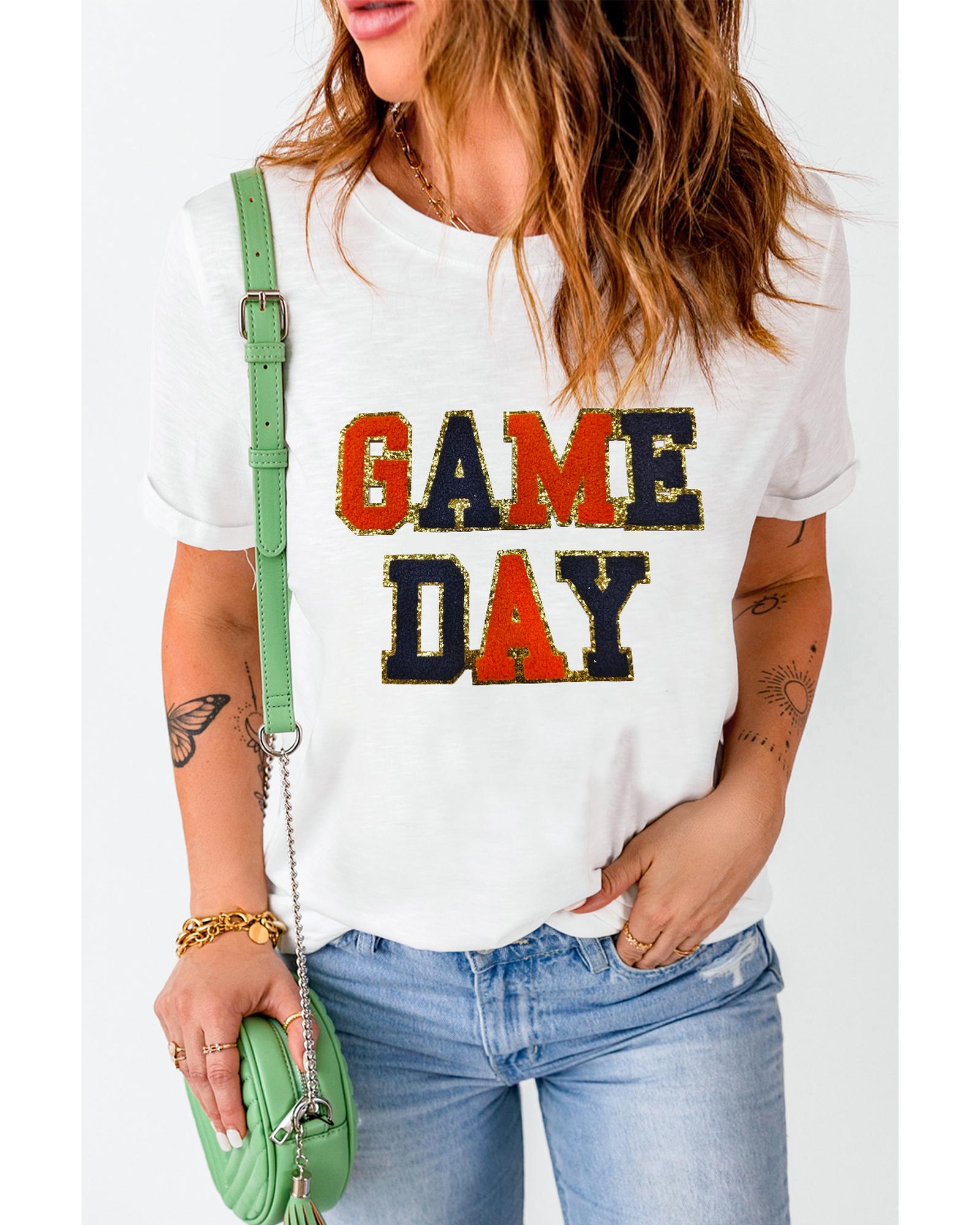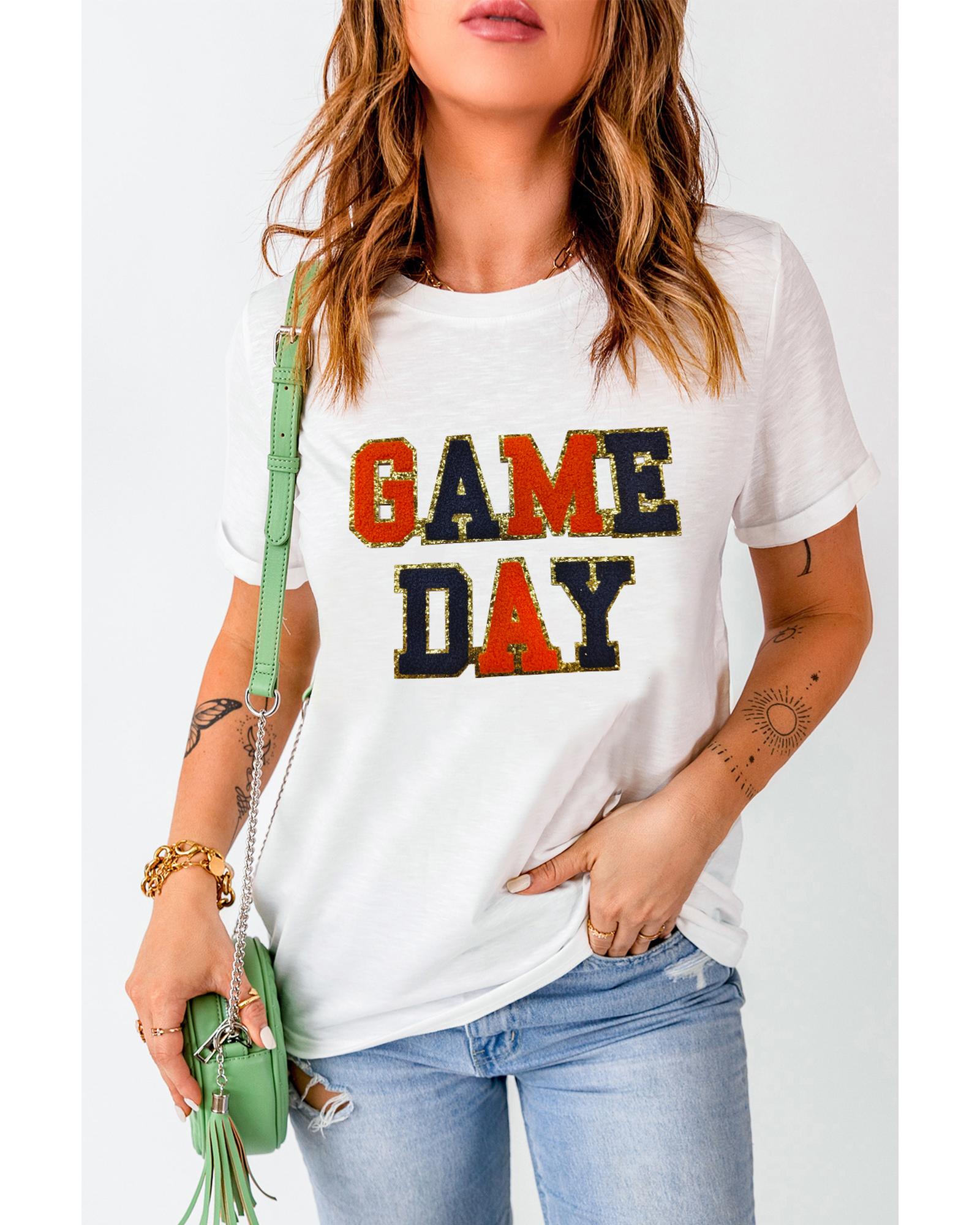 - White Glitter GAME DAY Rugby Football Season Round Neck T Shirt