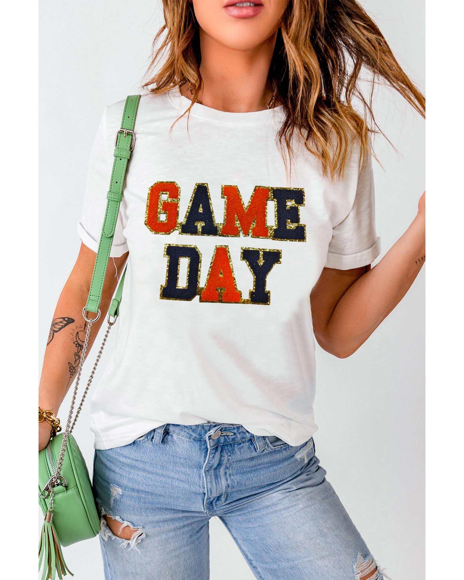 - White Glitter GAME DAY Rugby Football Season Round Neck T Shirt