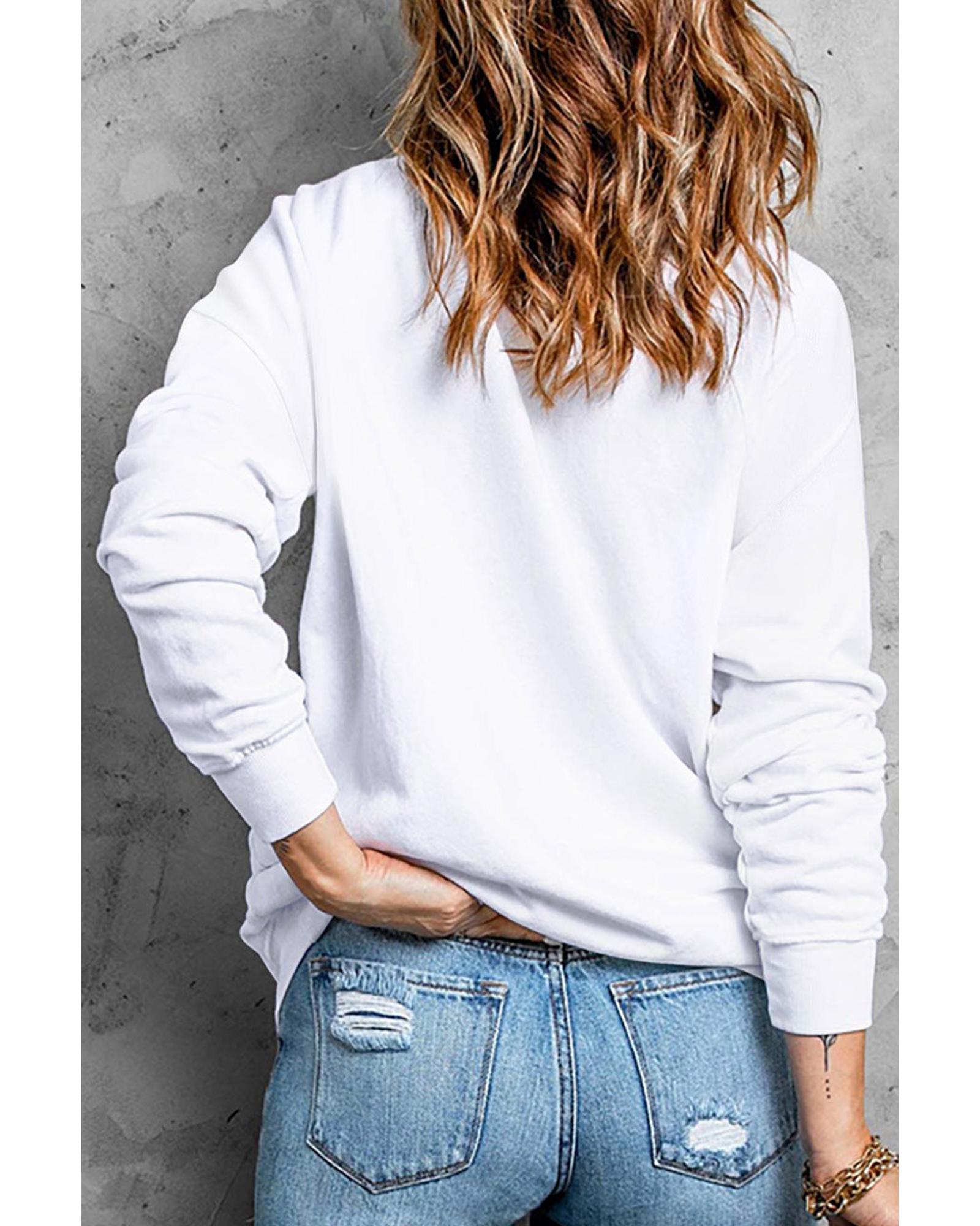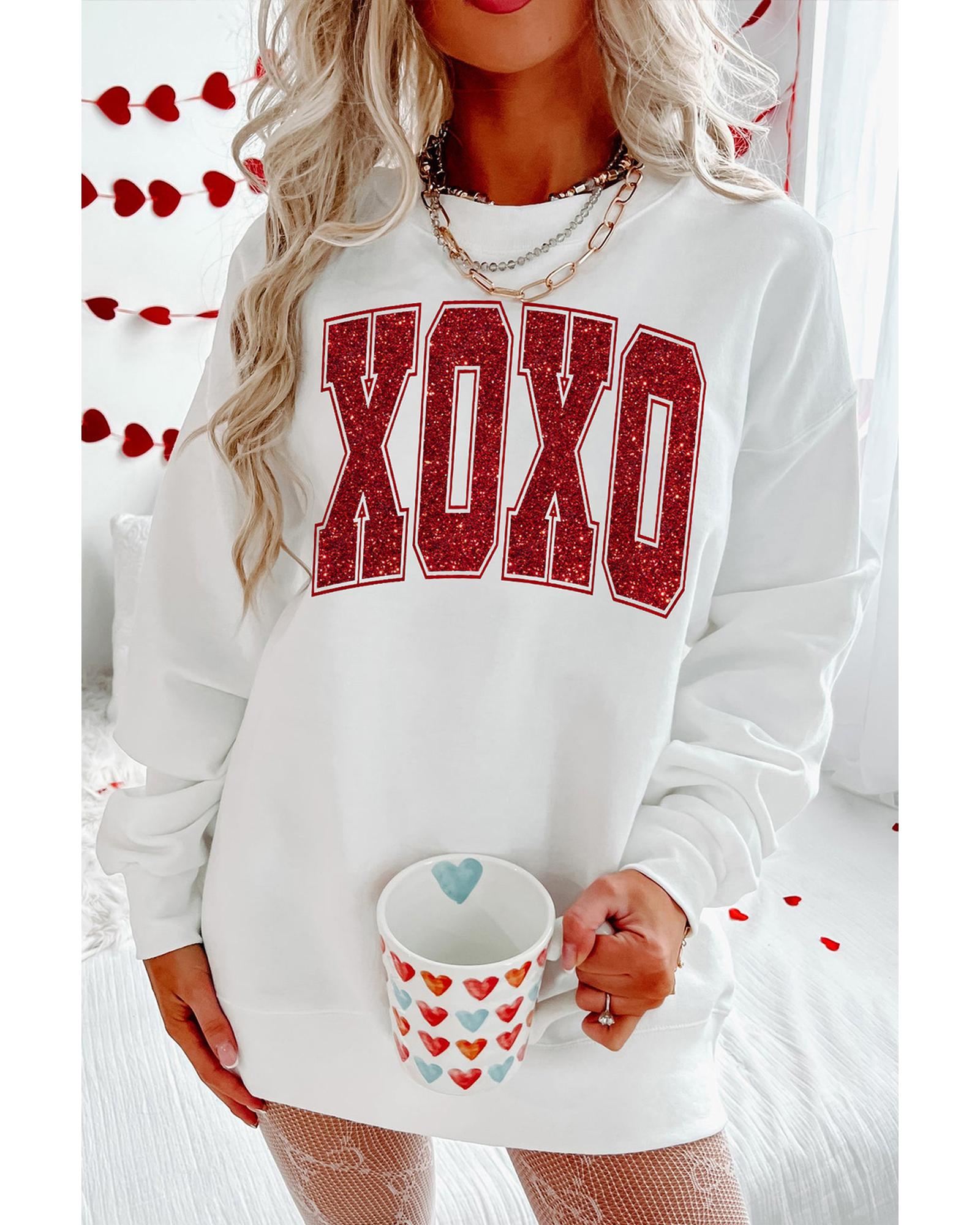 White Glitter XOXO Graphic Crewneck Valentines Pullover Sweatshirt – S