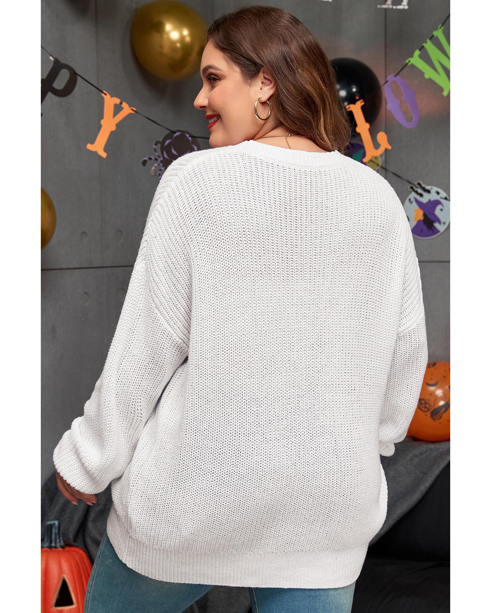 White Gobble Til You Wobble Pop Up Crochet Plus Size Sweater – 1X