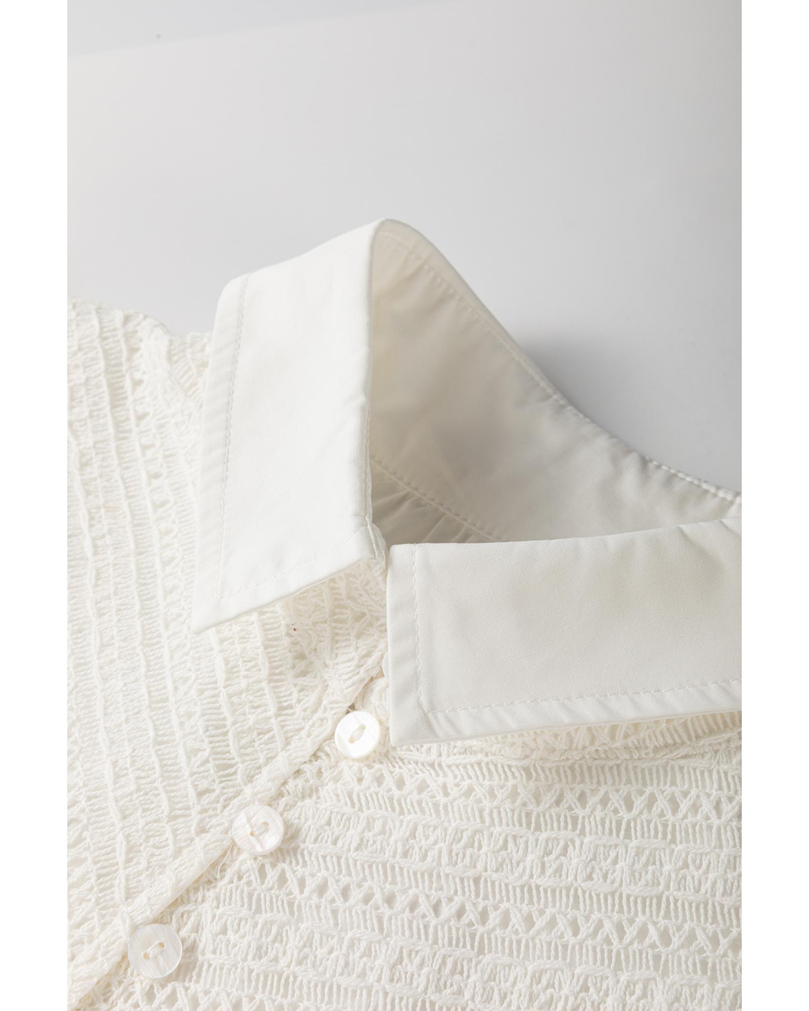 White Half Button Lace Patchwork Flutter Sleeve Blouse – L