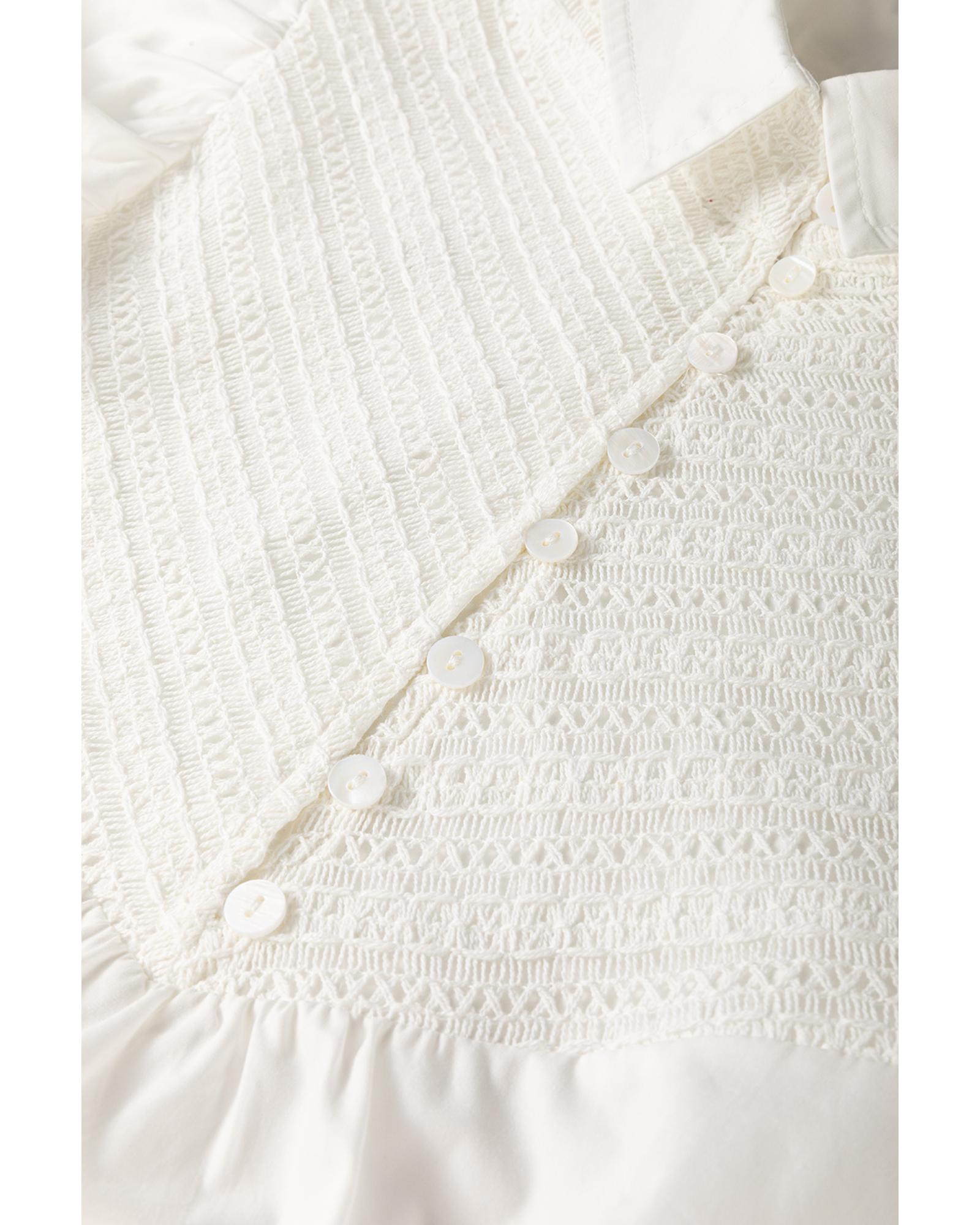 White Frilly Off Shoulder Lace Insert Sleeve Textured Blouse - S