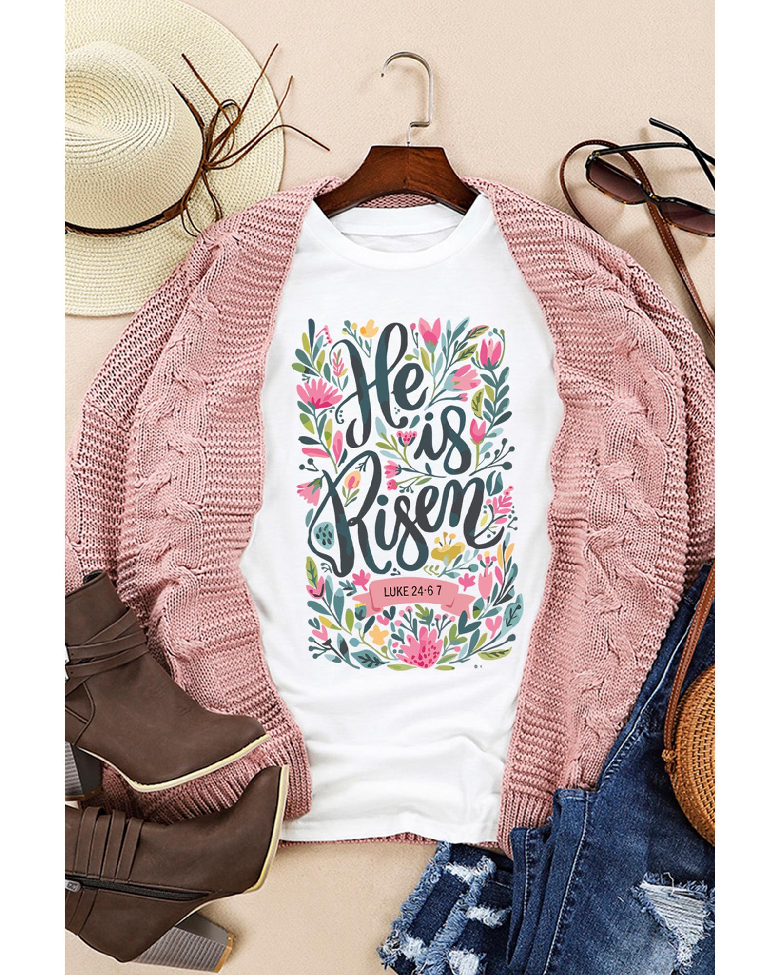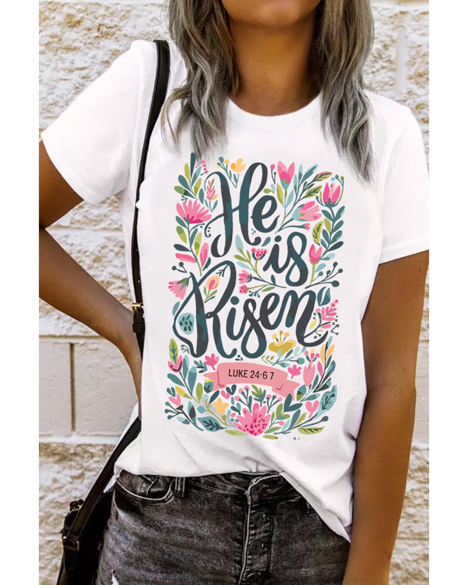 White He is Risen Floral Printed T Shirt – 2XL