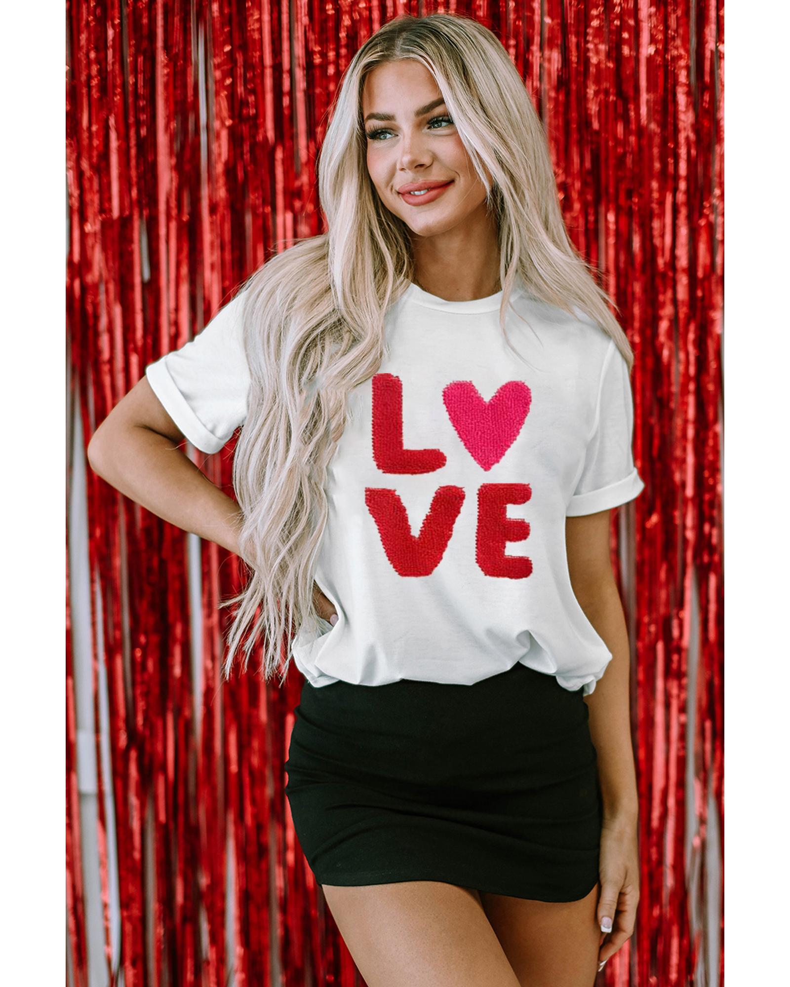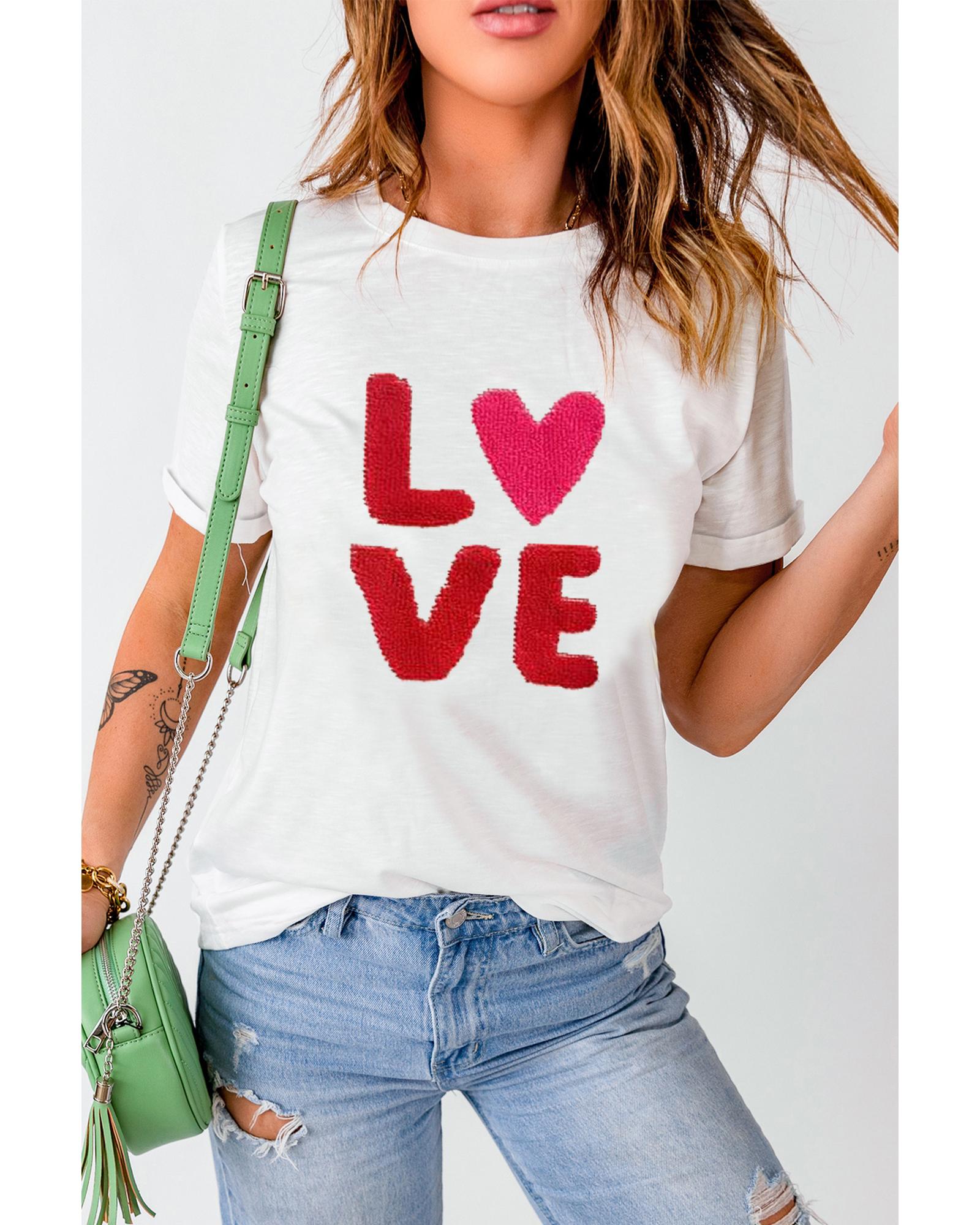 - White Heart LOVE Graphic Valentines T