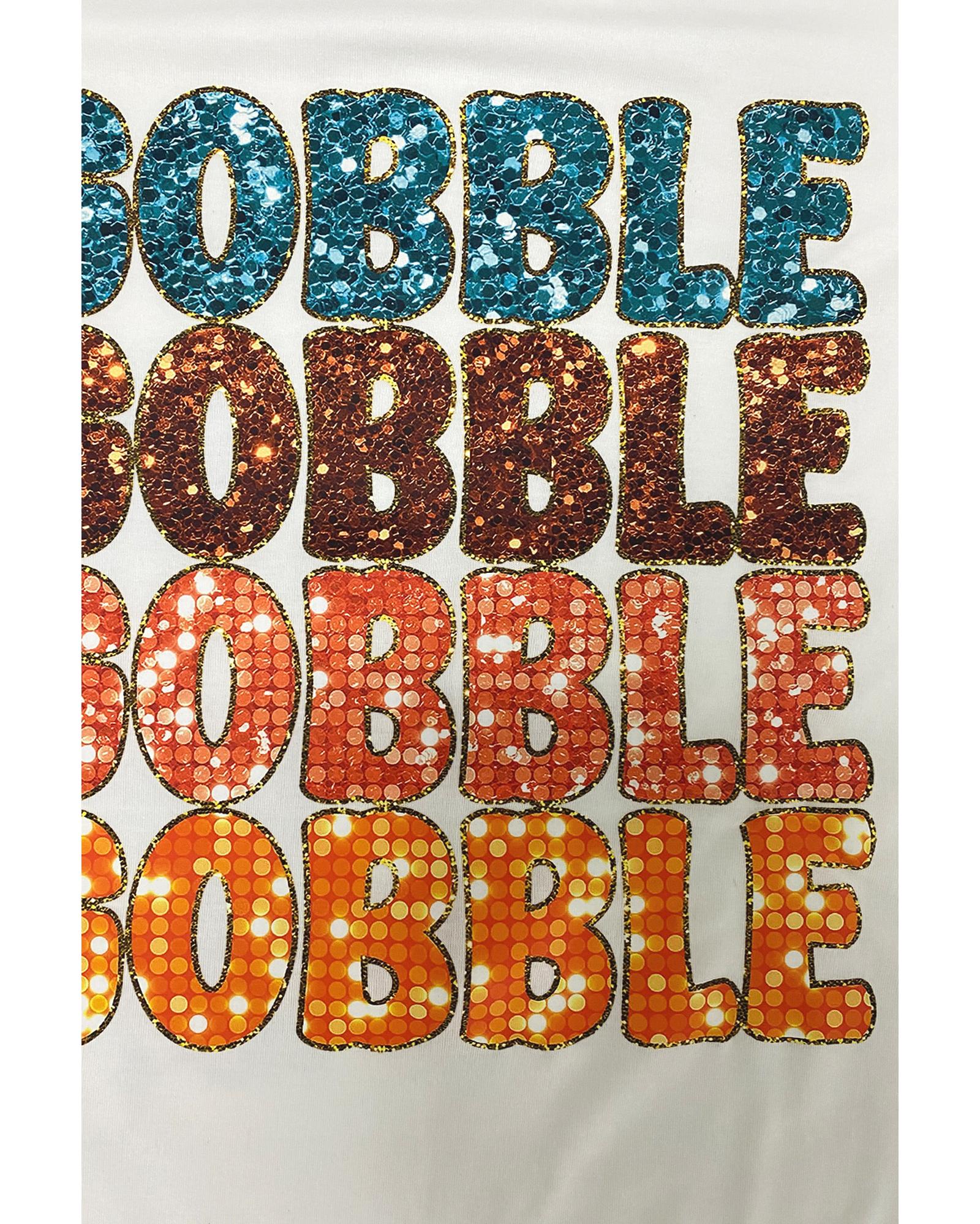 • White Heat Transfer GOBBLE Graphic Crewneck Thanksgiving T