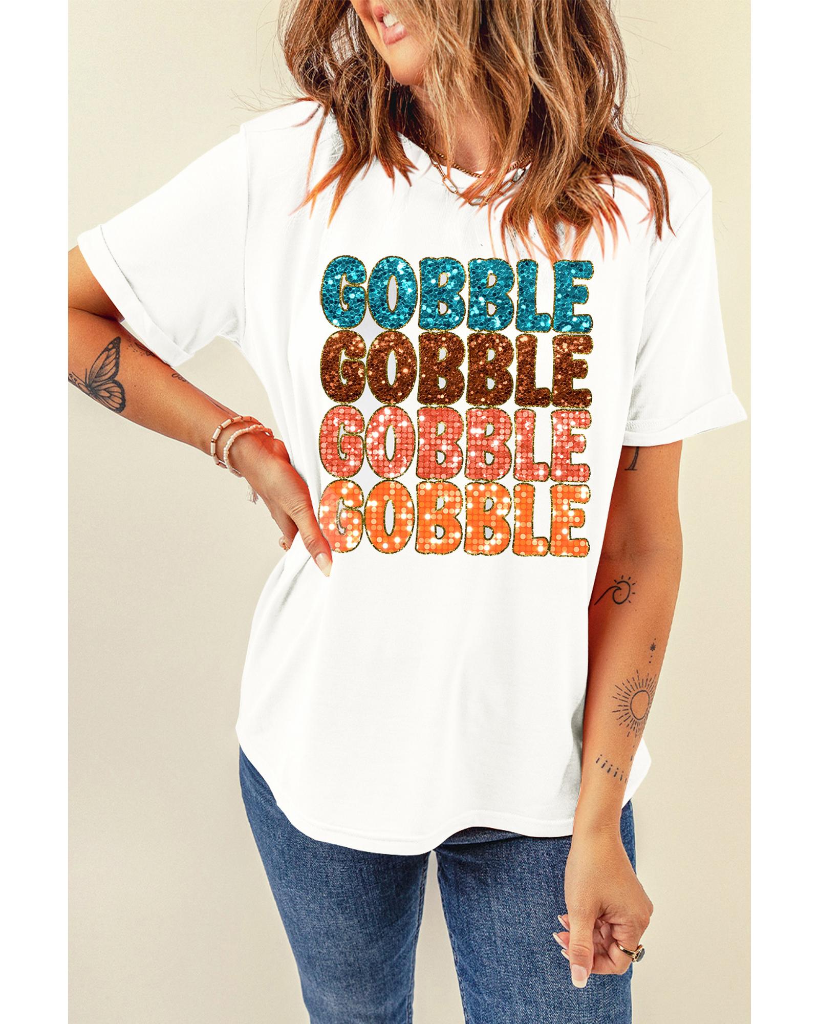 White Heat Transfer GOBBLE Graphic Crewneck Thanksgiving T Shirt – XL