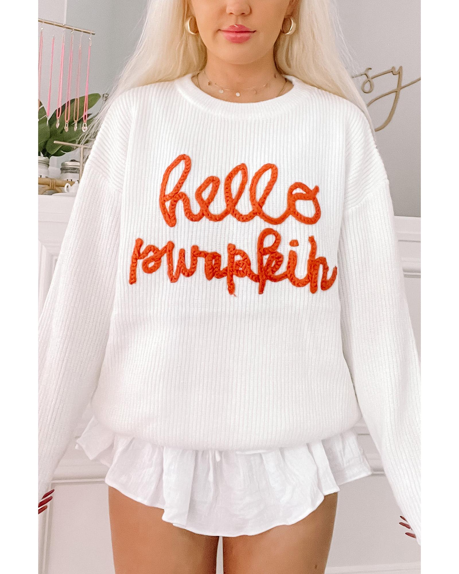 - Cozy sweater with a text hello pumpkin in a cursive font