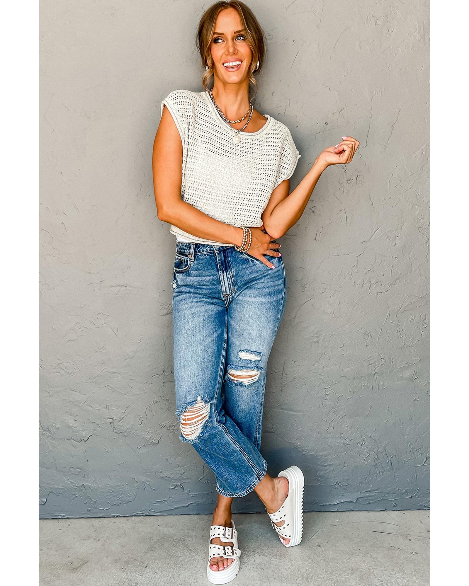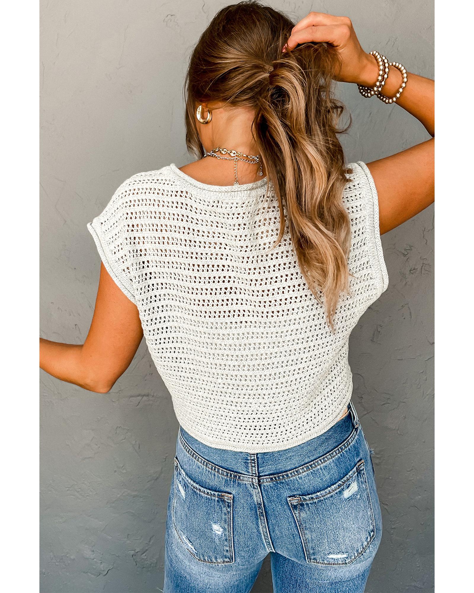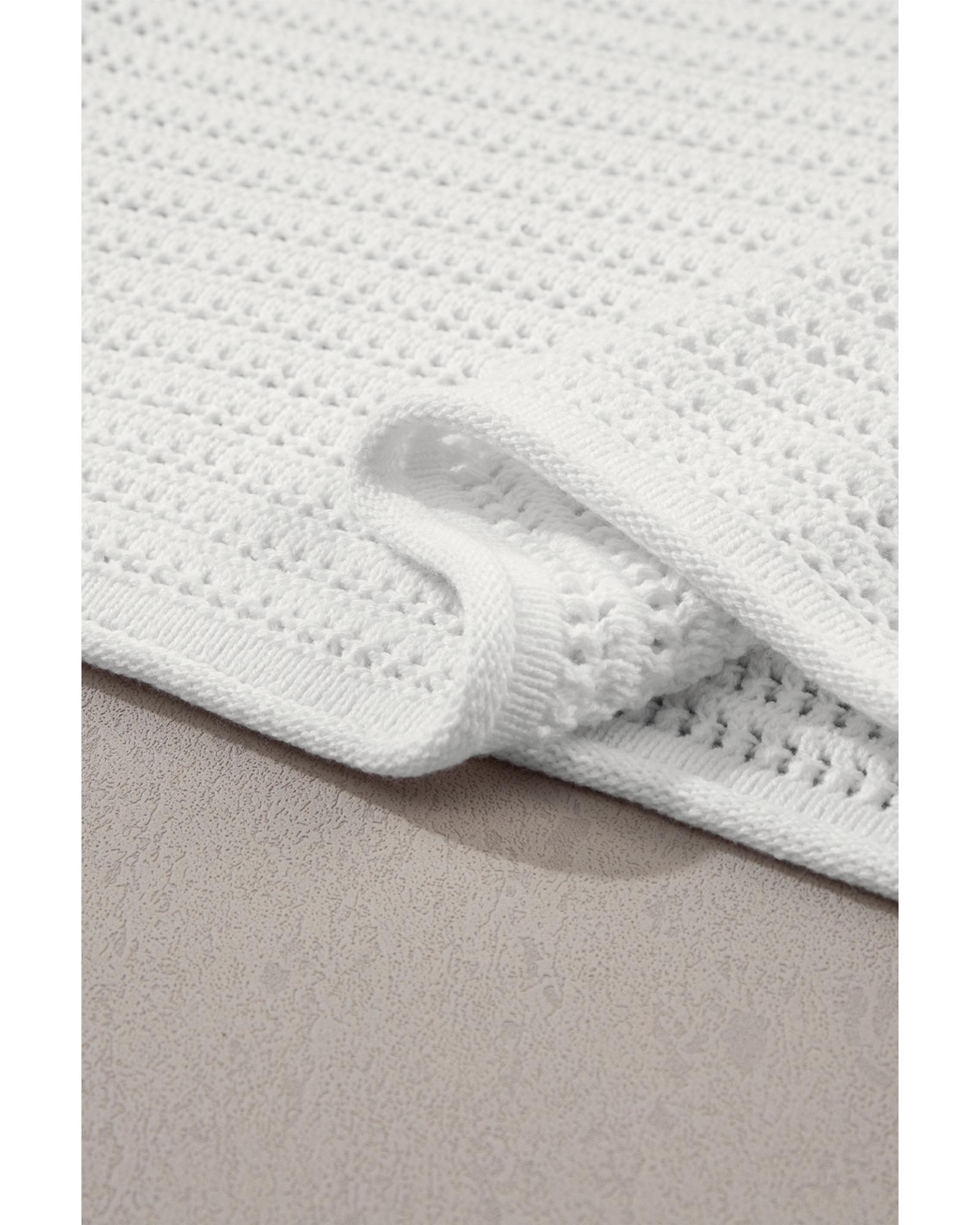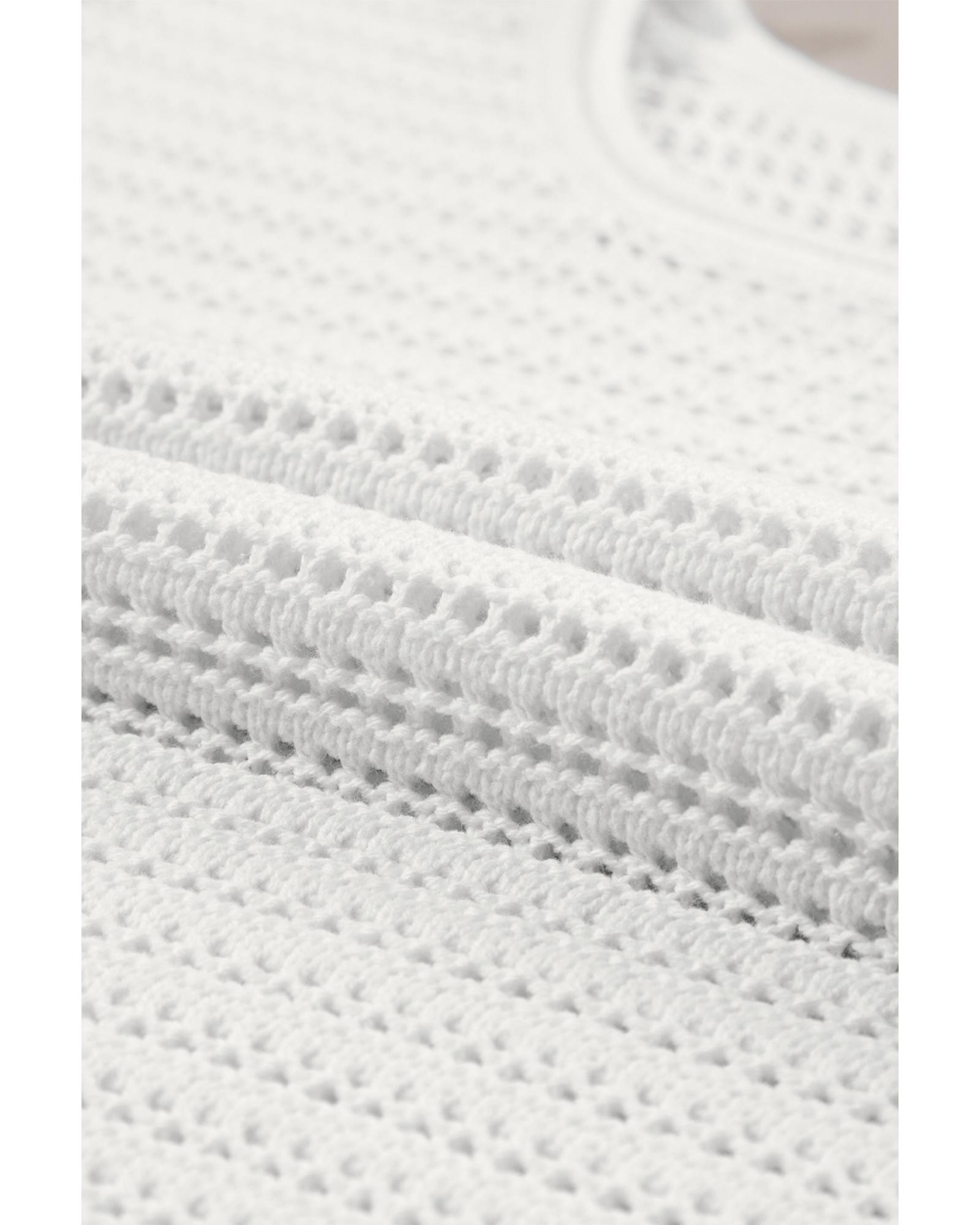 White Hollow Out Knit Cap Sleeve Sweater – XL