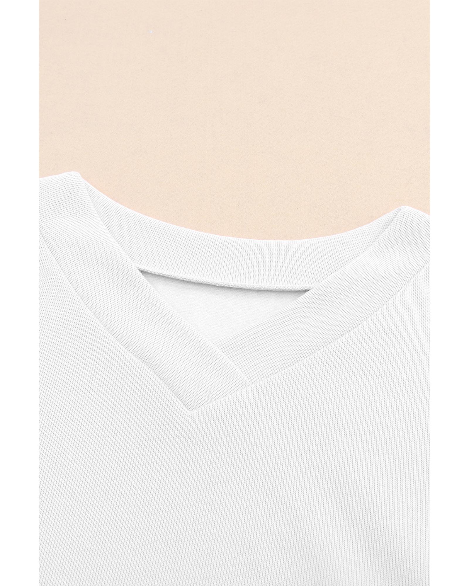 White Knitted V Neck Buttoned Cuffs Sweater – L