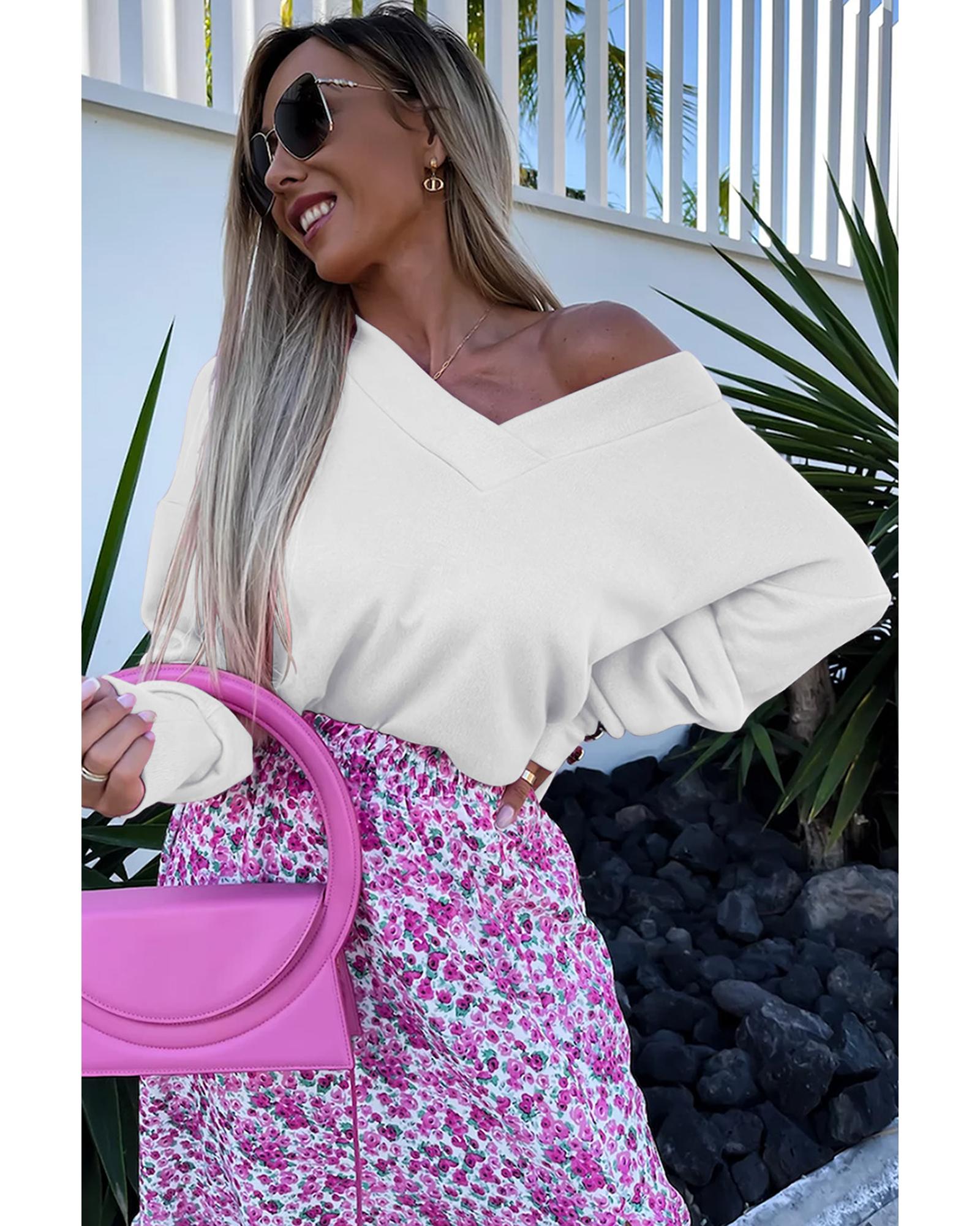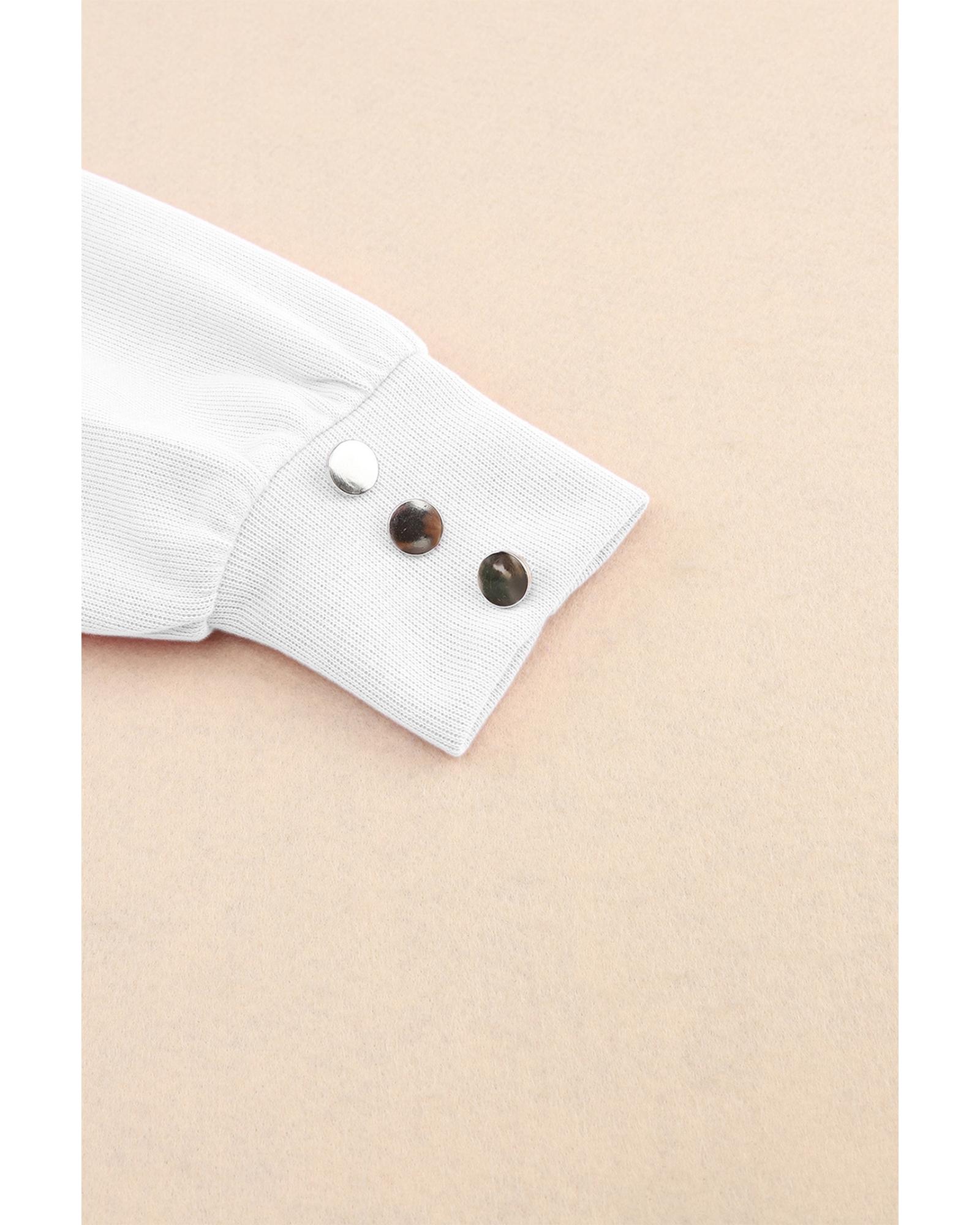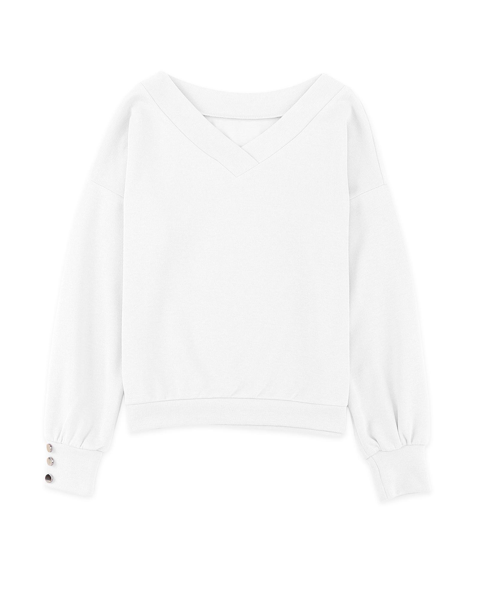 White Knitted V Neck Buttoned Cuffs Sweater – XL