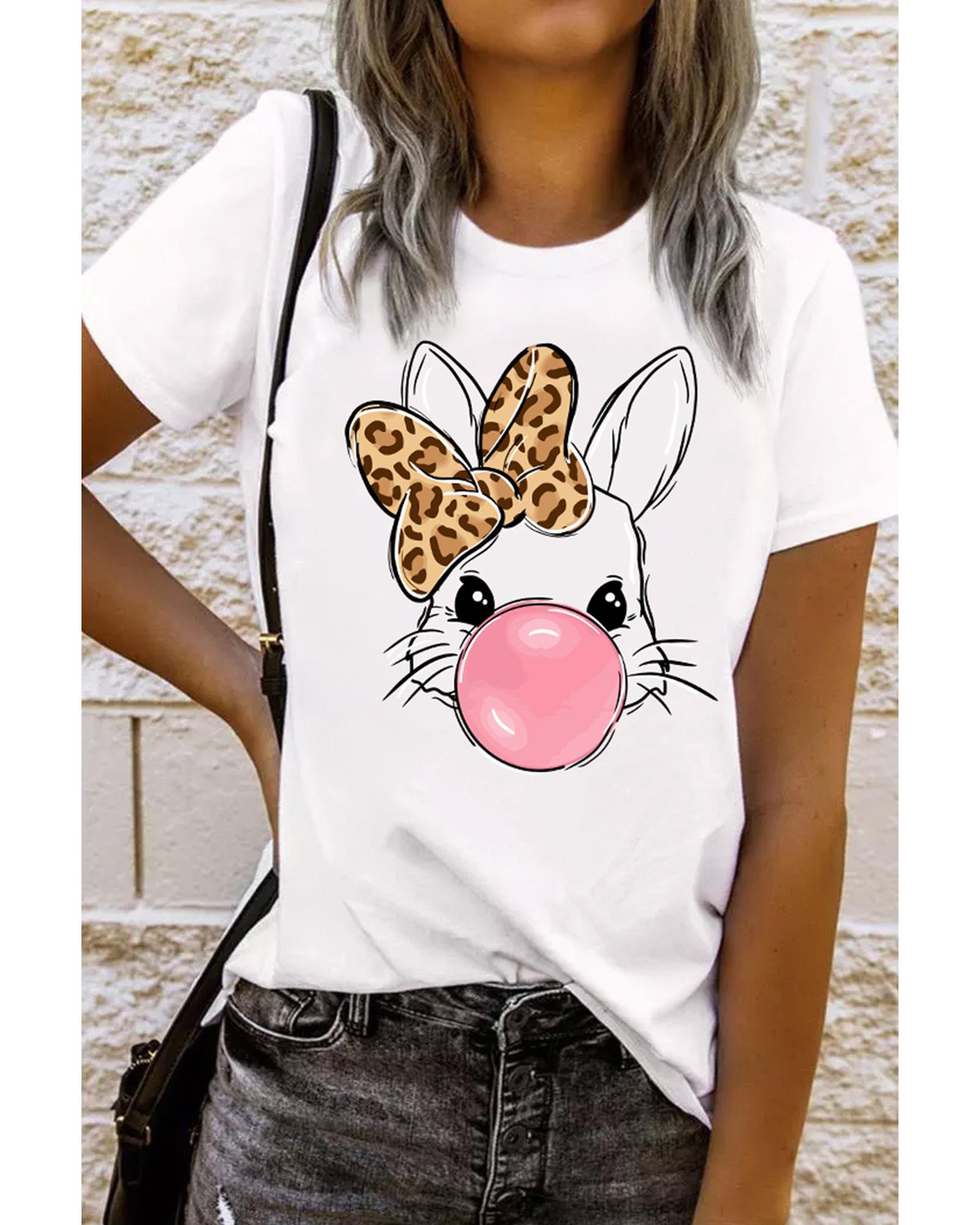 White Leopard Bow Bubble Rabbit Graphic Tee – 2XL