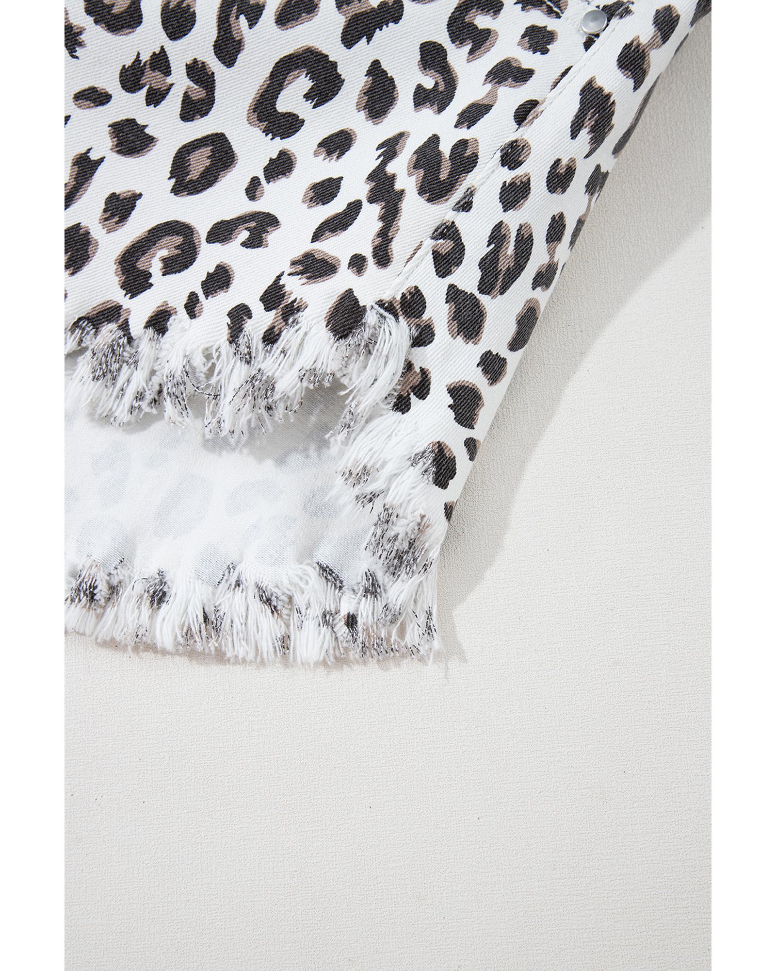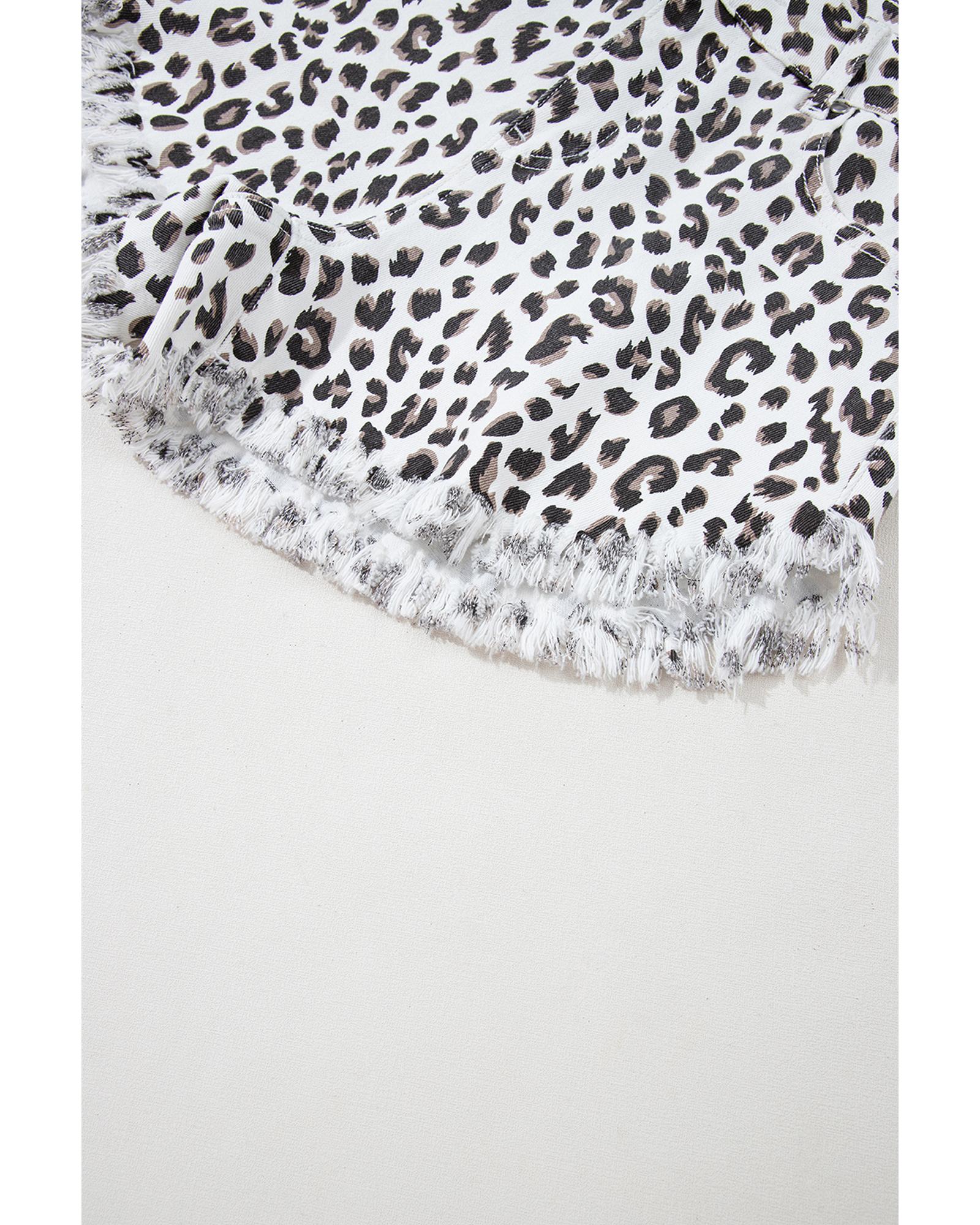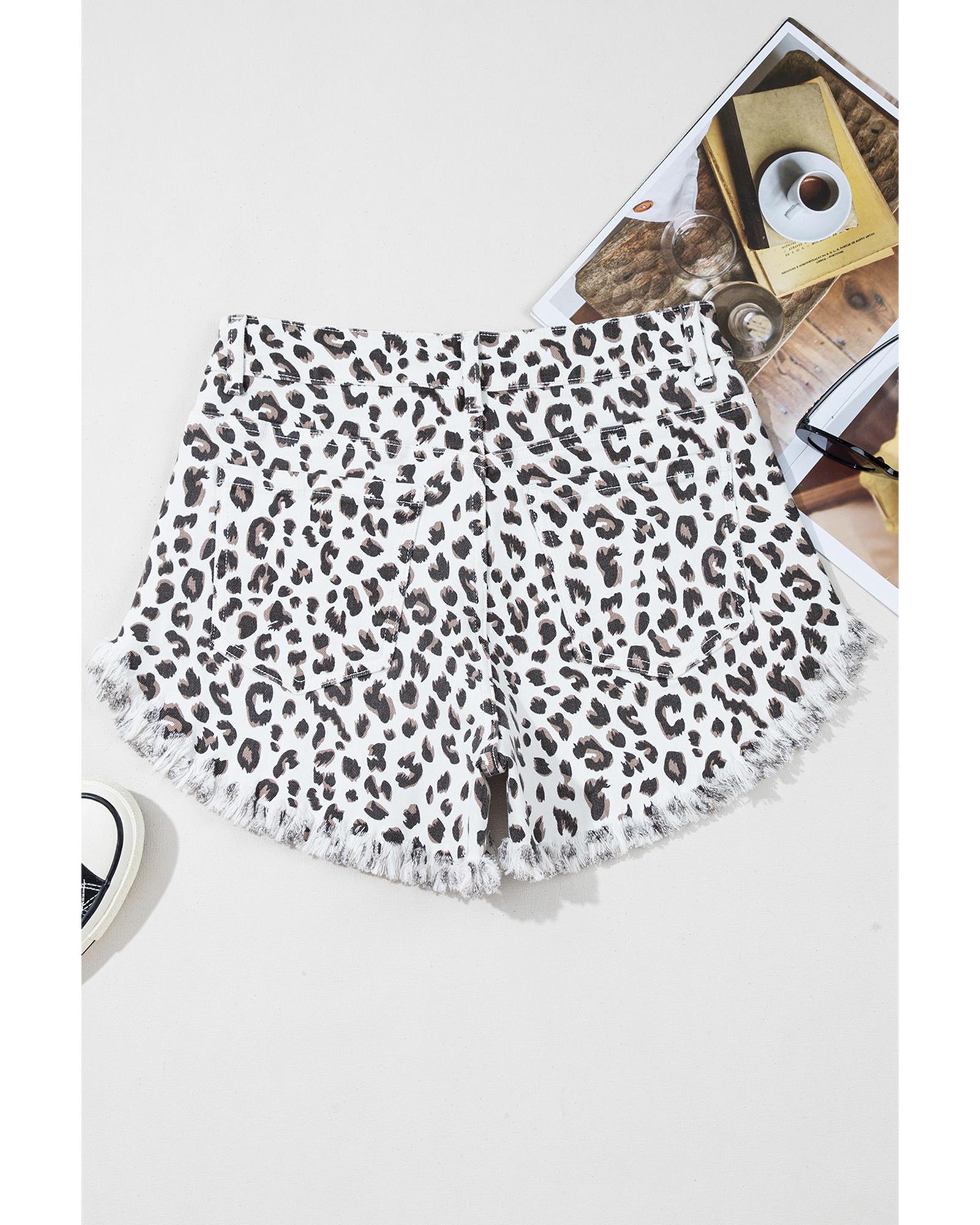 White Leopard Frayed Hem Denim Shorts – 4 US