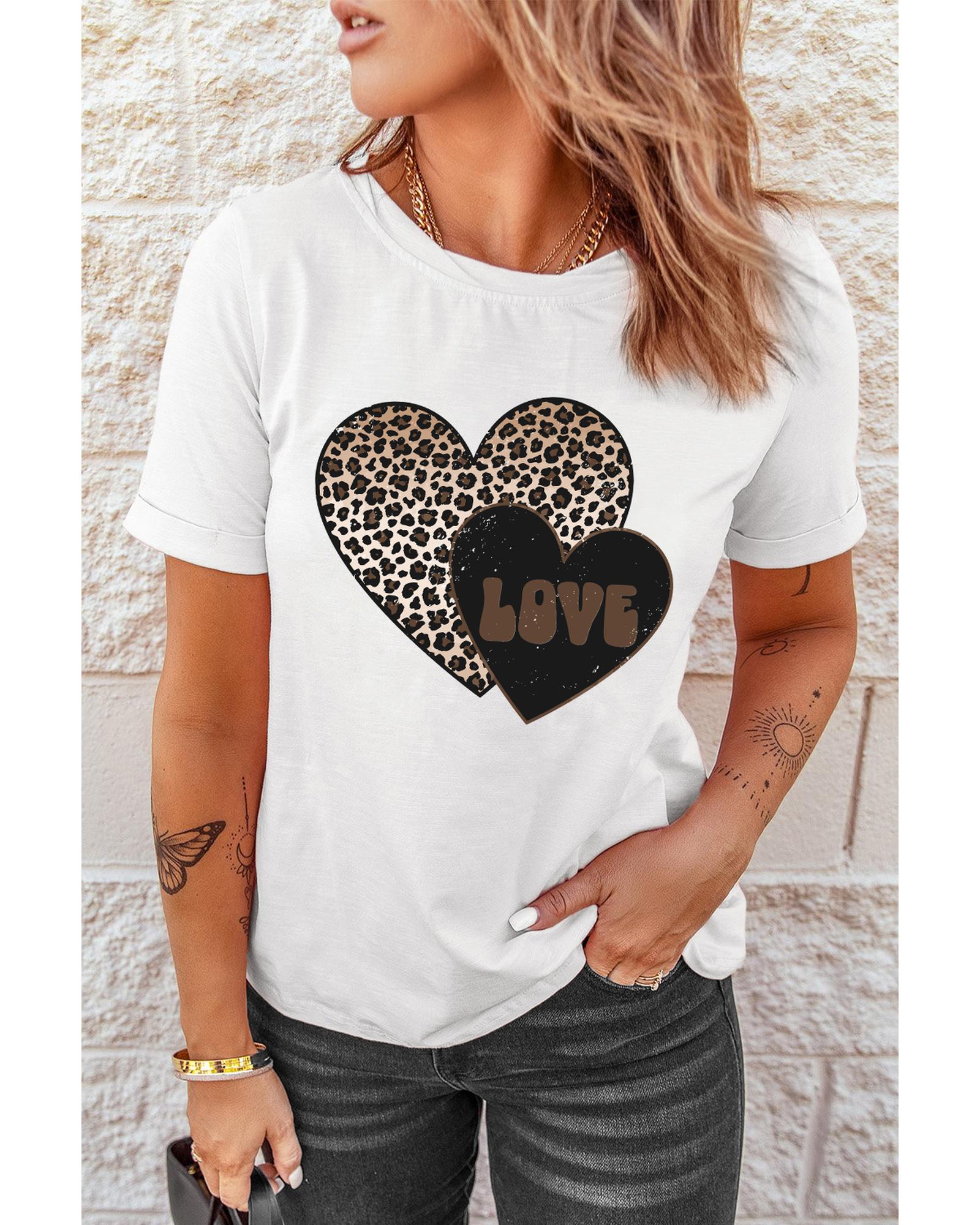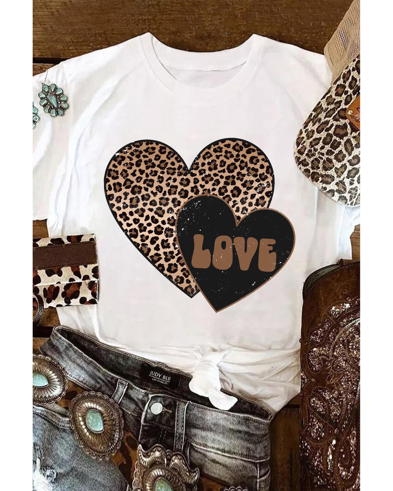 • White Leopard LOVE Double Heart Printed Valentines Graphic Tee