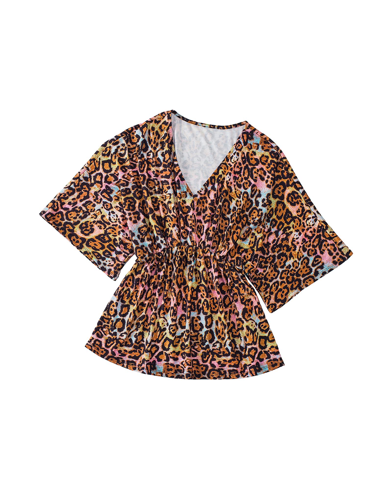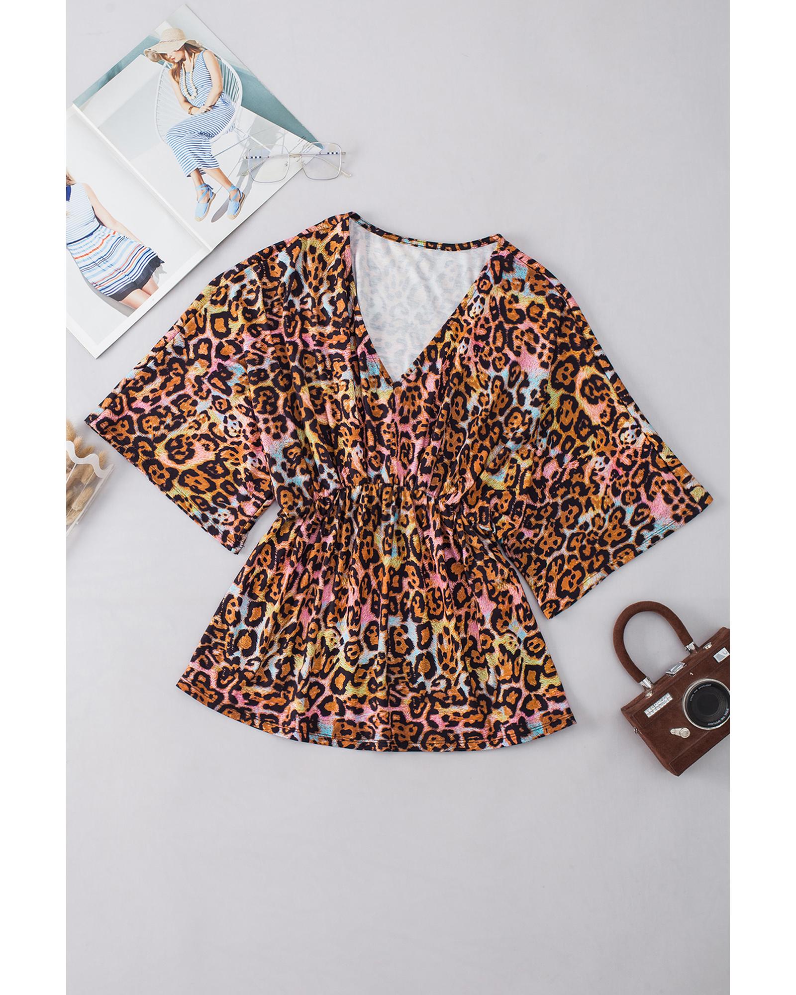 White Leopard Print Wide Sleeve Peplum Hem Blouse – XL