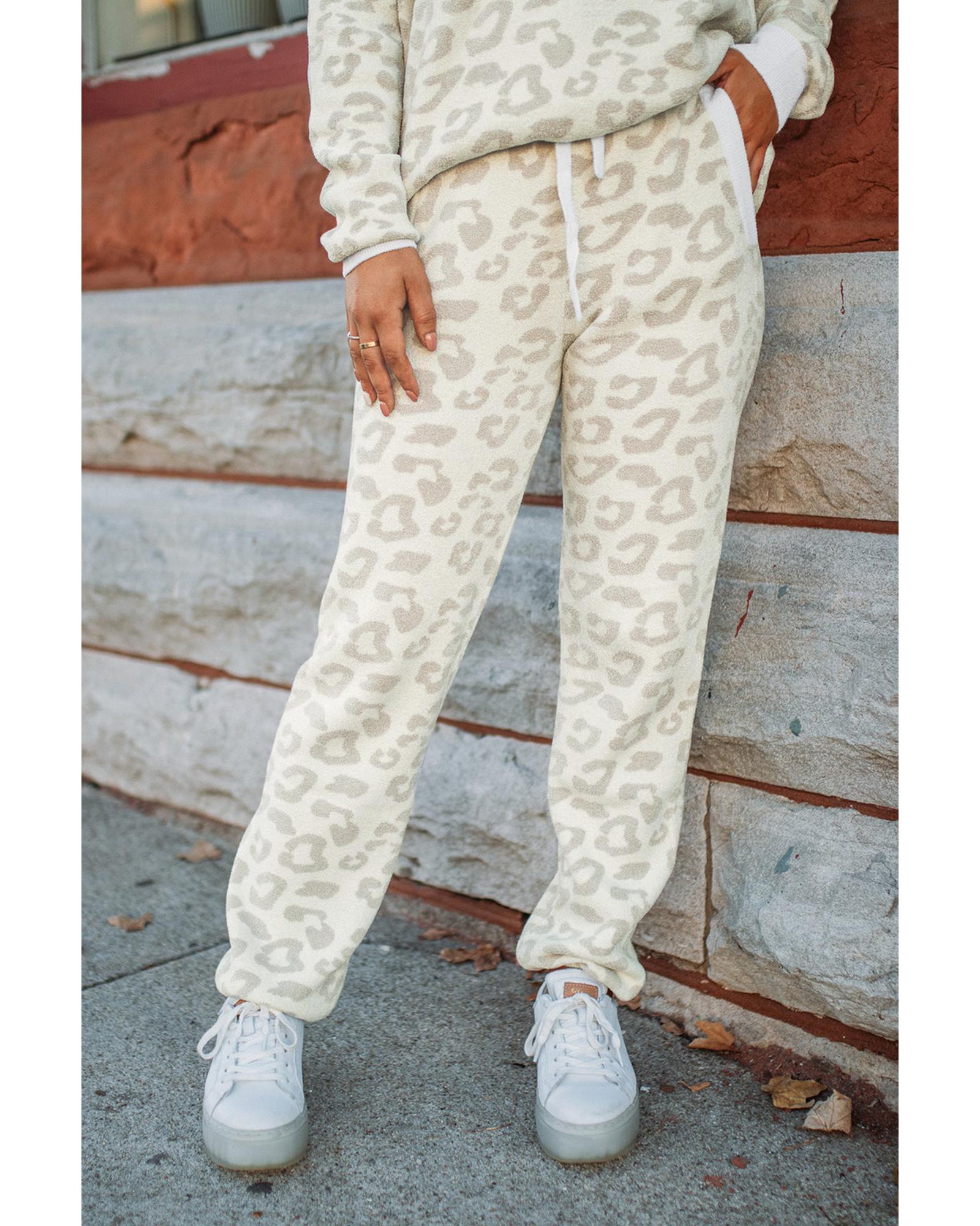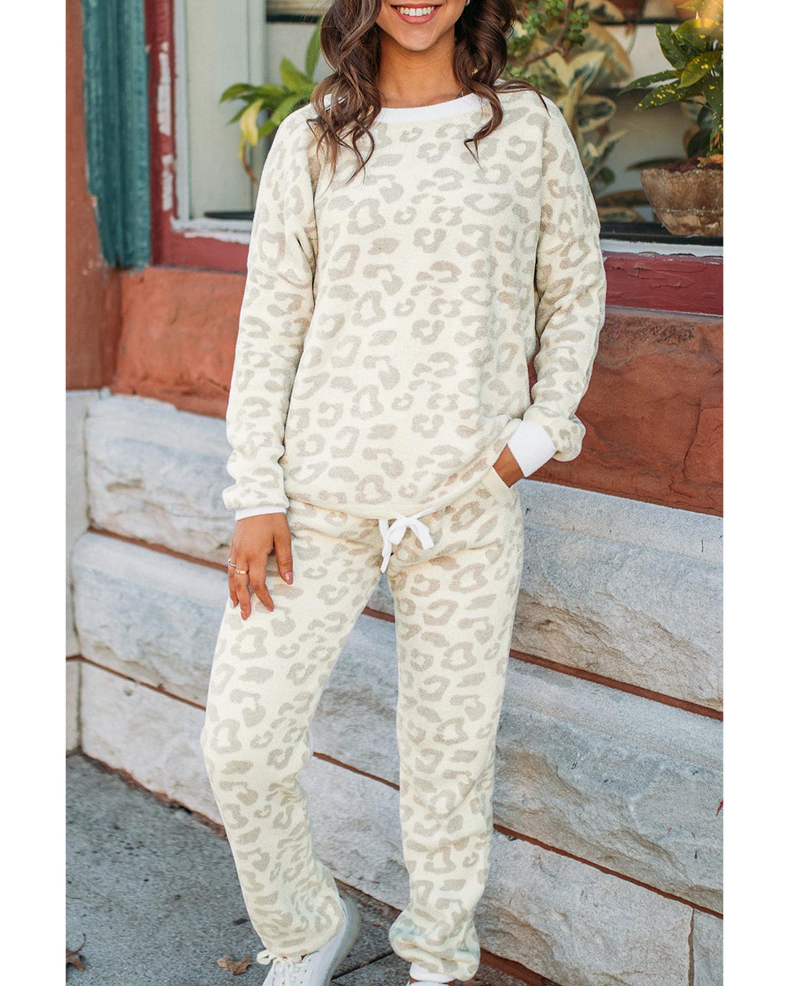 White Leopard Pullover and Drawstring Pants Lounge Set – S