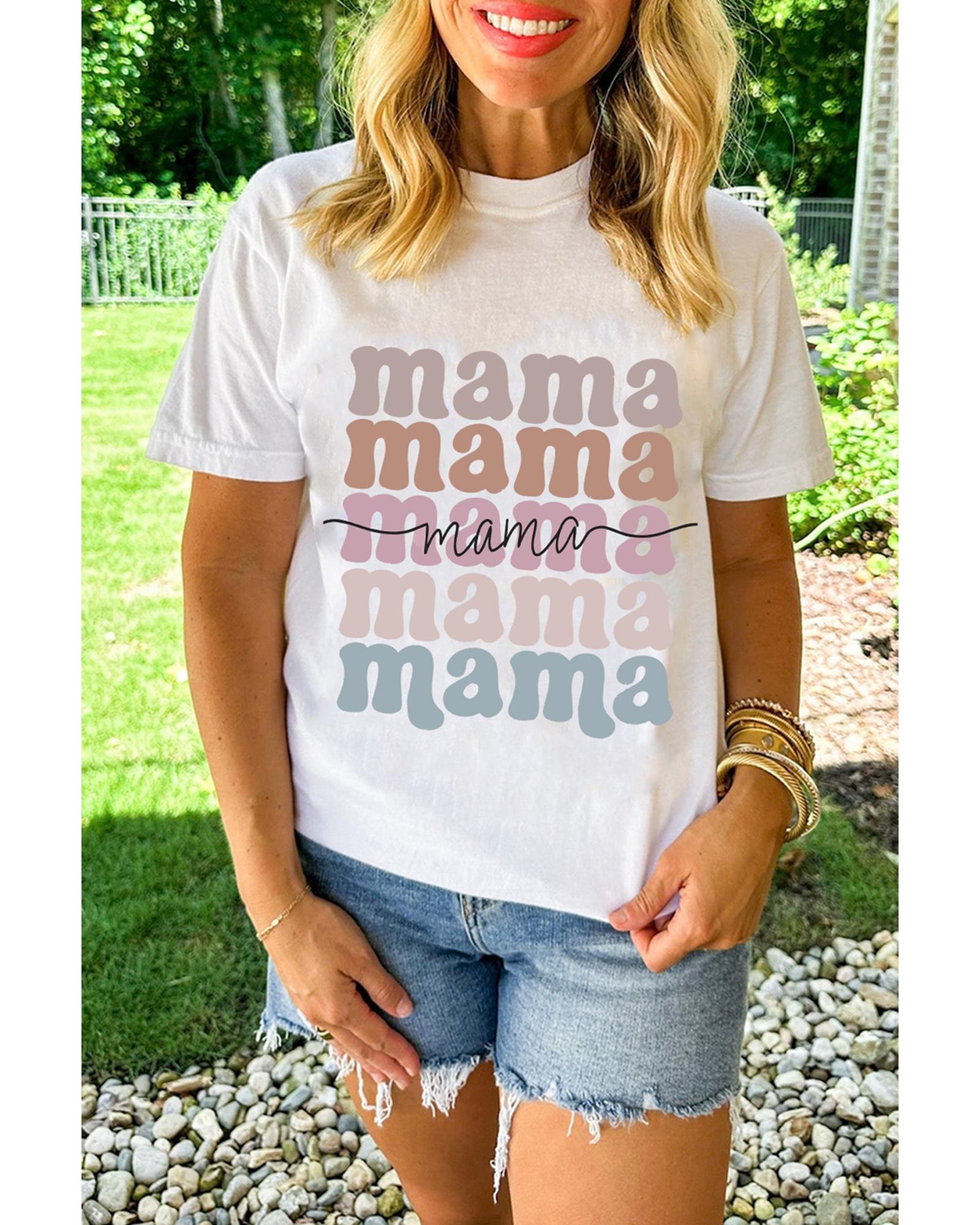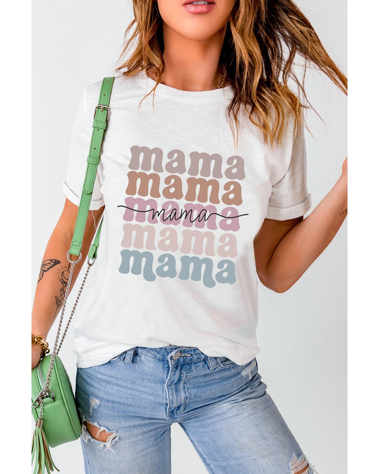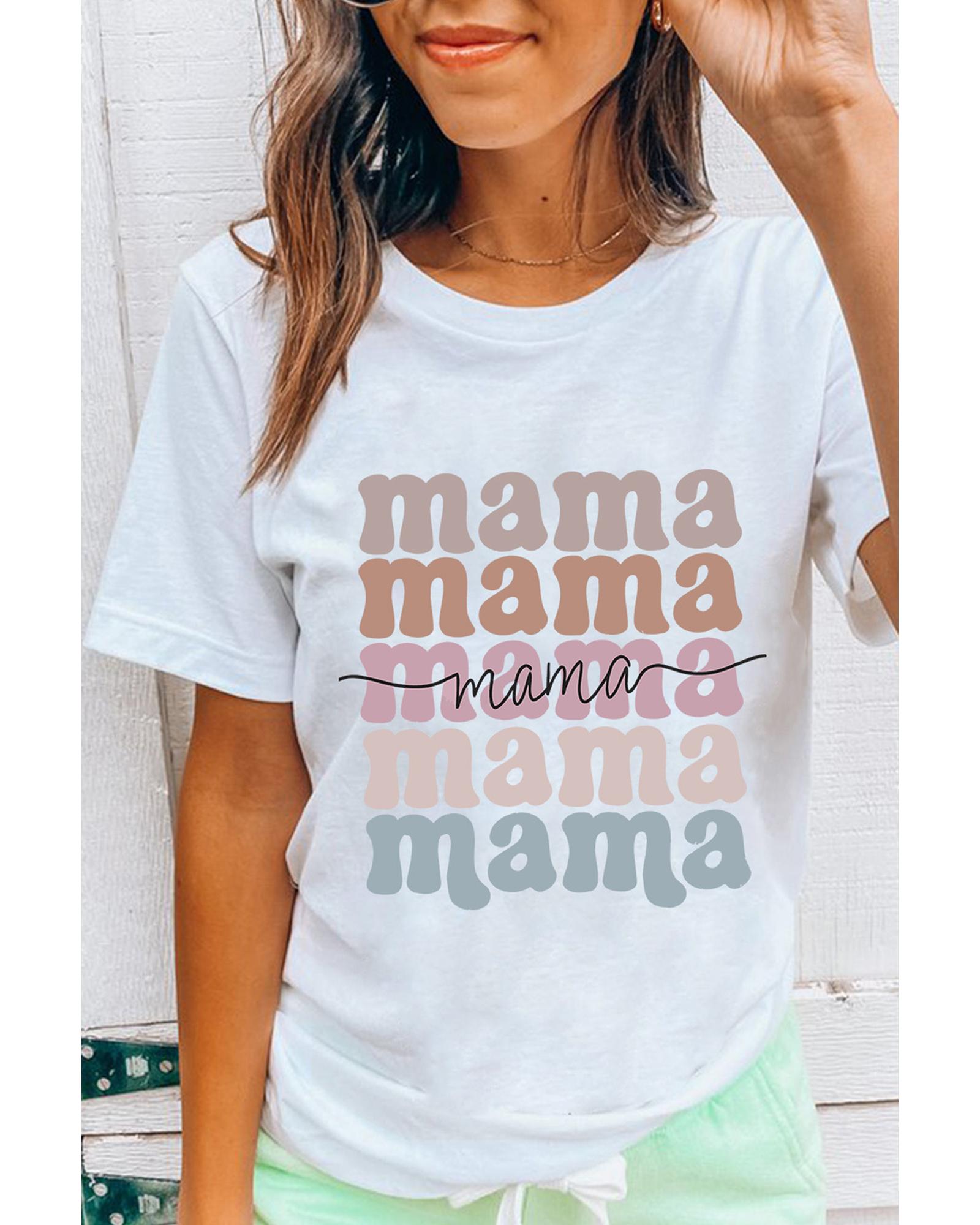 White mama Lettering Printed Crew Neck Tee – 2XL