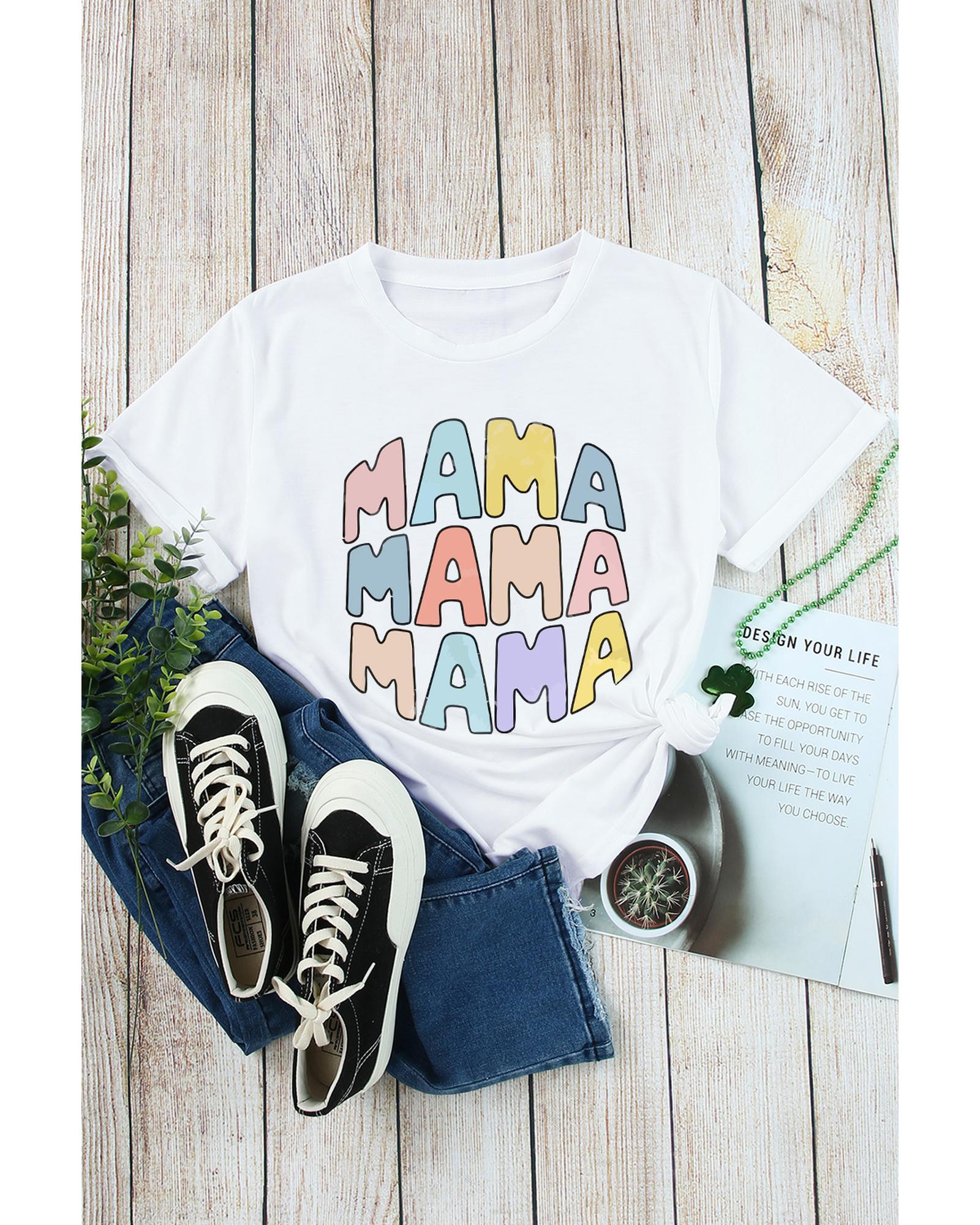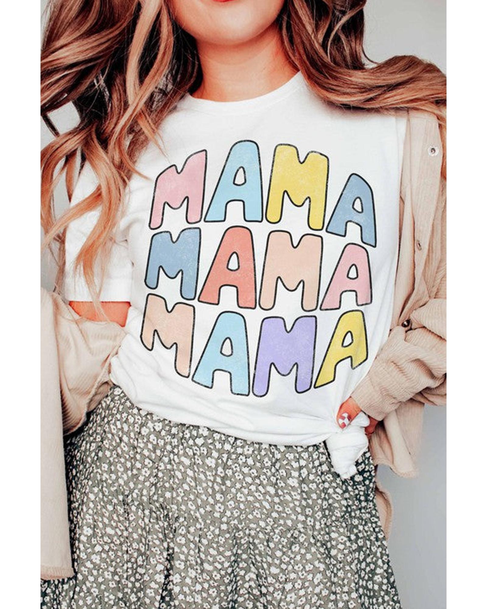 White MAMA Slogan Print Crew Neck Casual T Shirt – 2XL