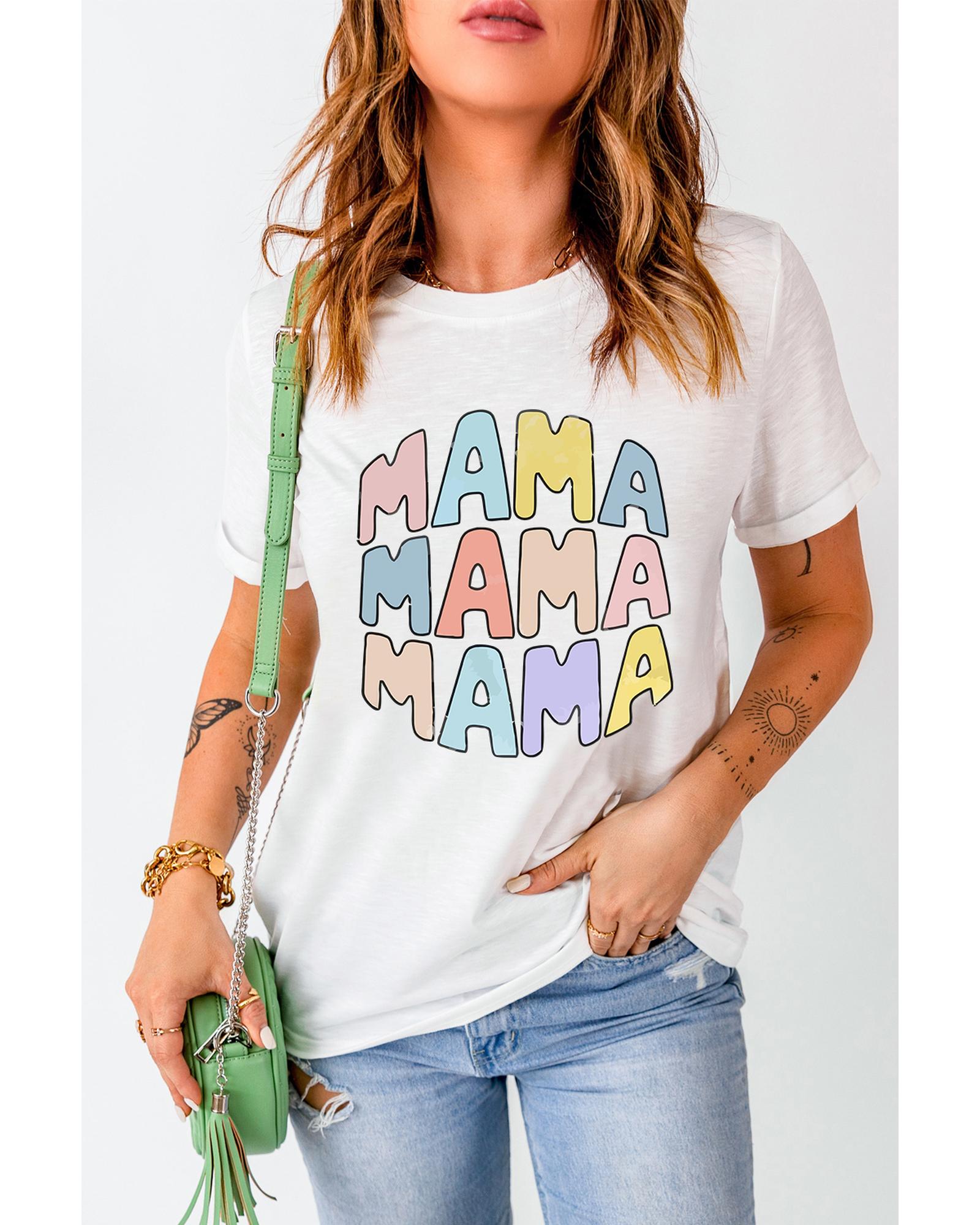 White MAMA Slogan Print Crew Neck Casual T Shirt – M