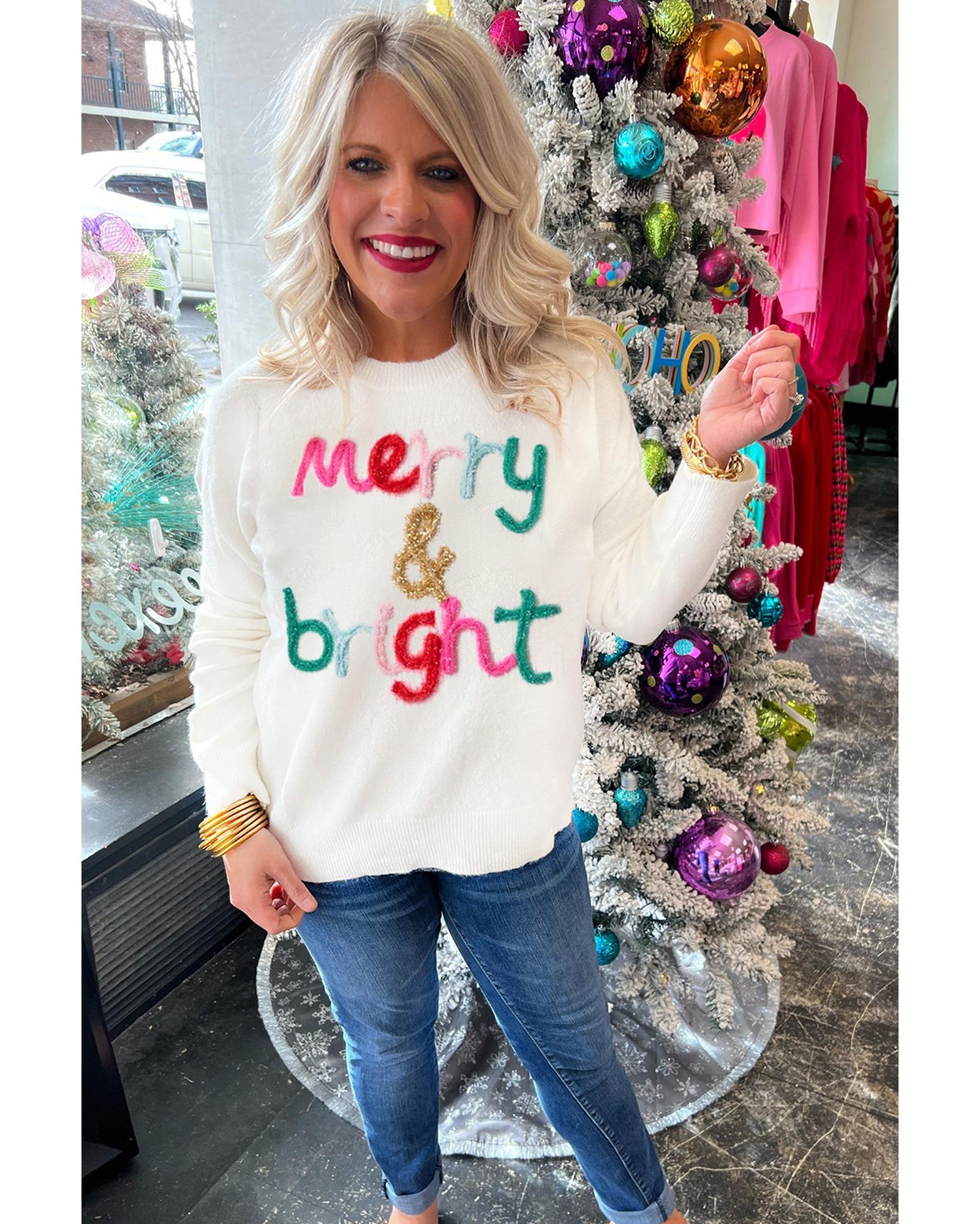 - Merry & Bright graphic print on the front