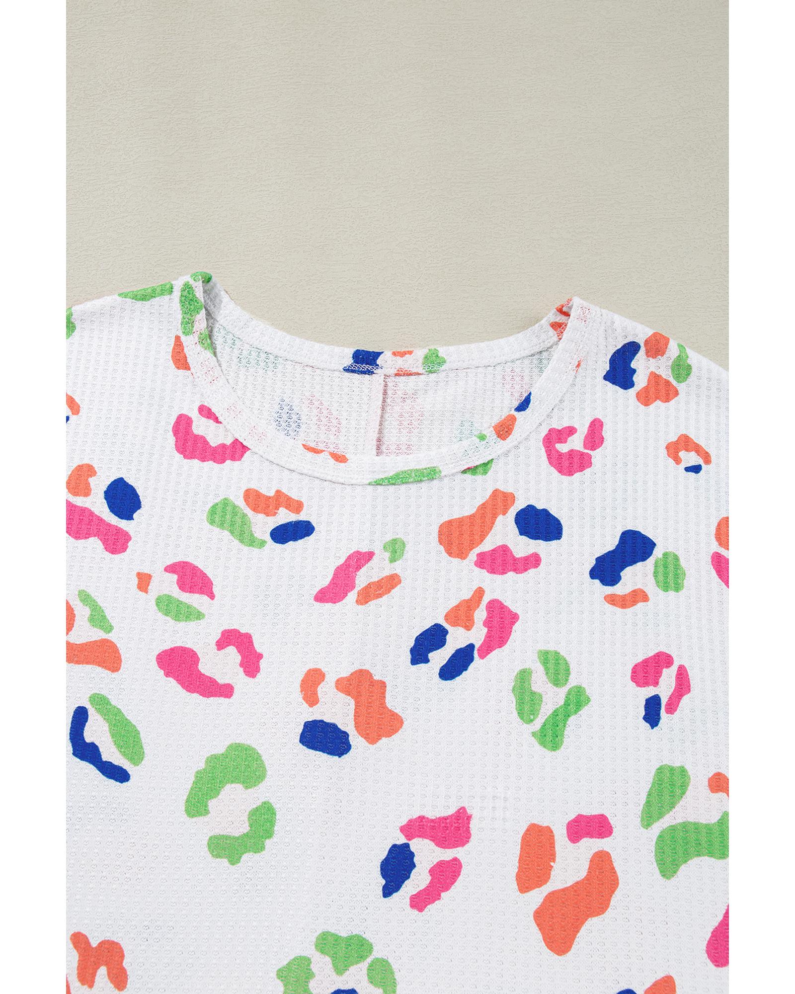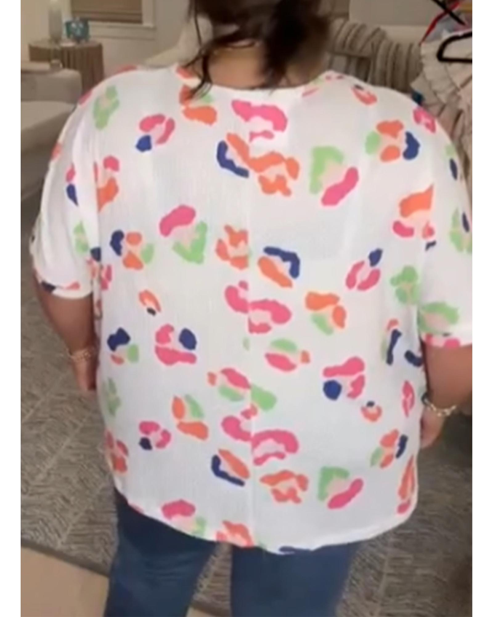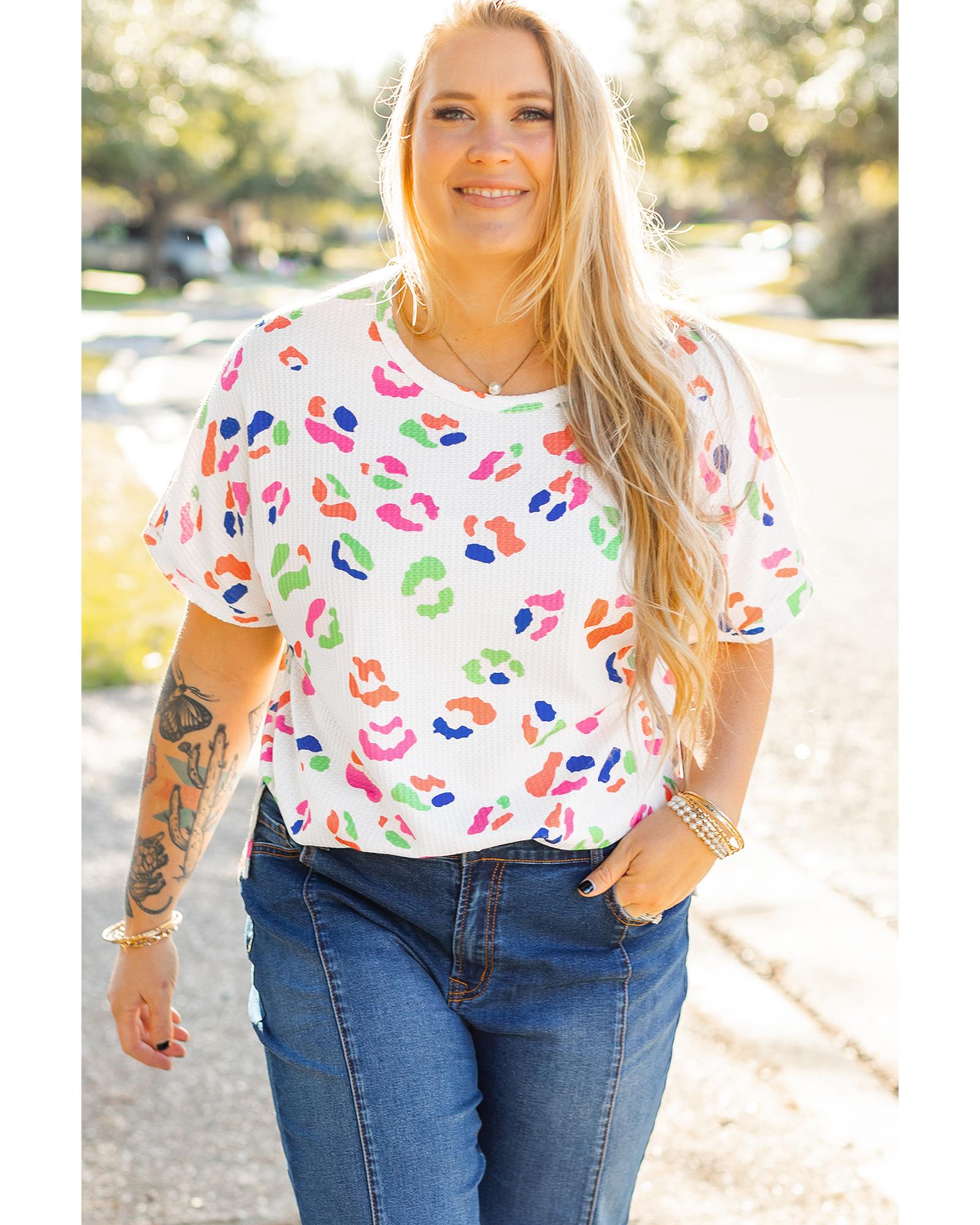 White Multicolor Leopard Print Textured Plus Size T Shirt – 1X