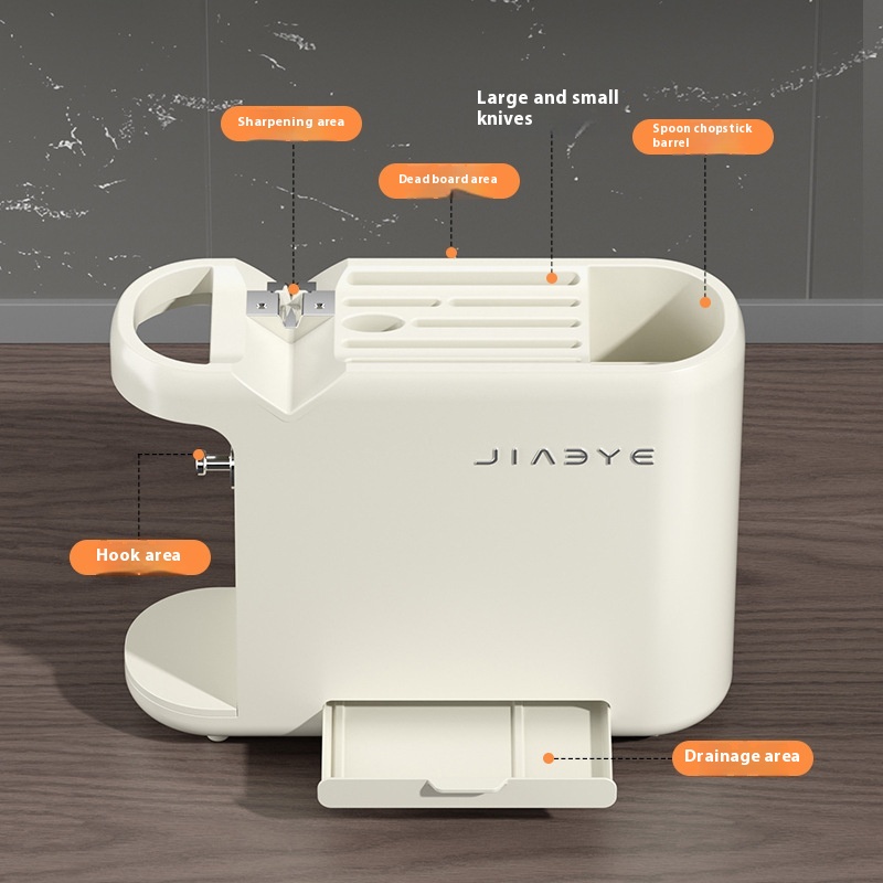 White Multifunctional Kitchen Knife Rack – Storage Organizer with Built-in Knife Sharpener, for Knives, Chopsticks, Cutting Boards, and Pot Lids