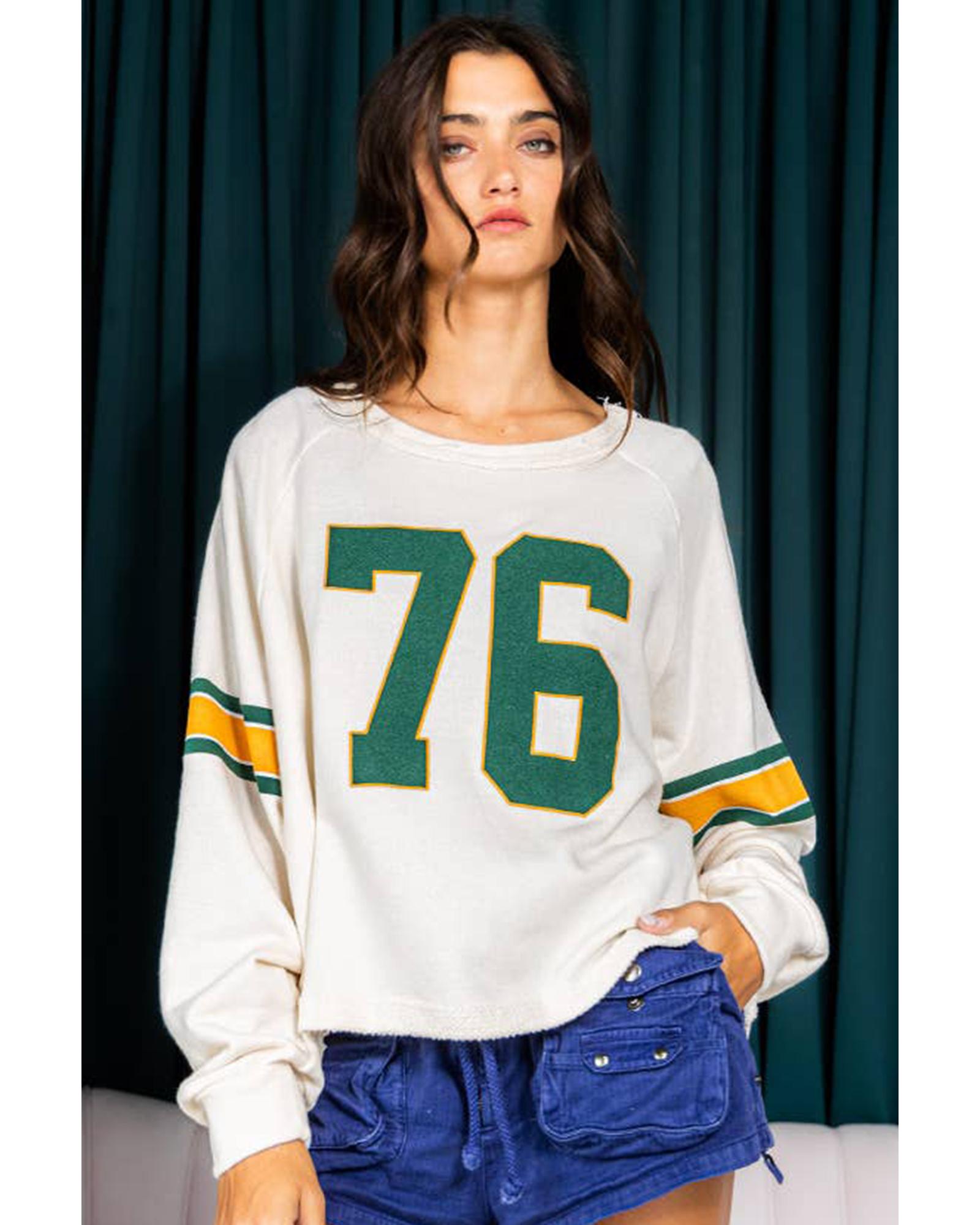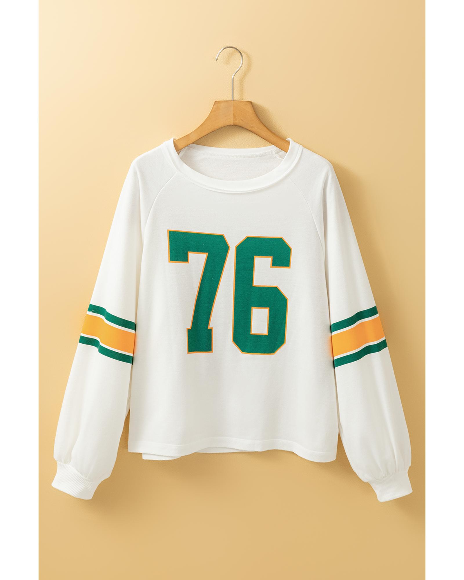 White Number 76 Printed Retro Sporty Long Sleeve Top – L