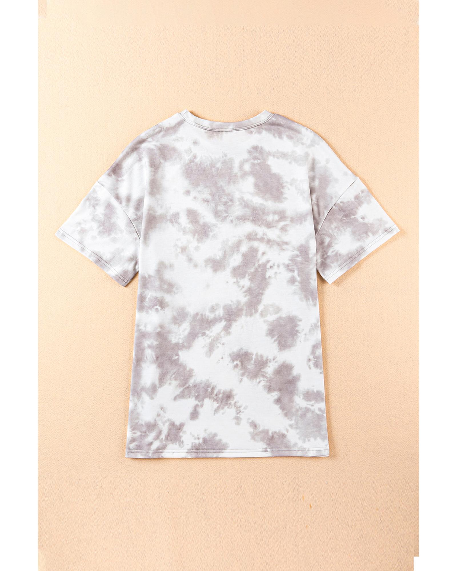 White Oversized Tie-dye AMERICA Graphic T-shirt with Distressing – S