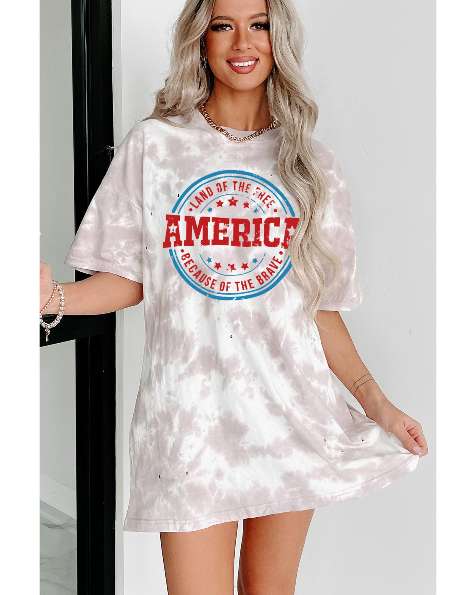 White Oversized Tie-dye AMERICA Graphic T-shirt with Distressing – XL