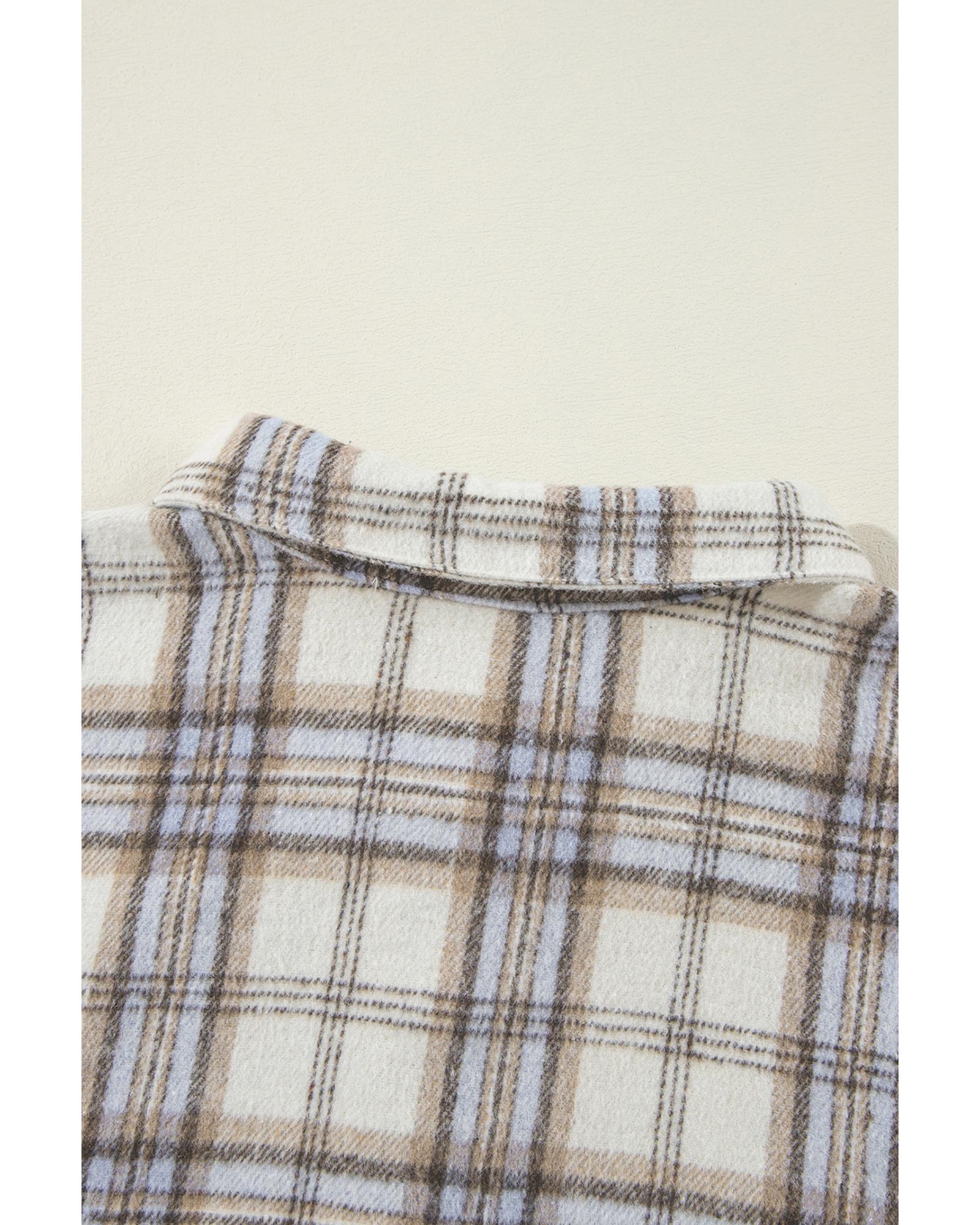 White Plaid Print Tunic Plus Size Shacket with Slits – 2X