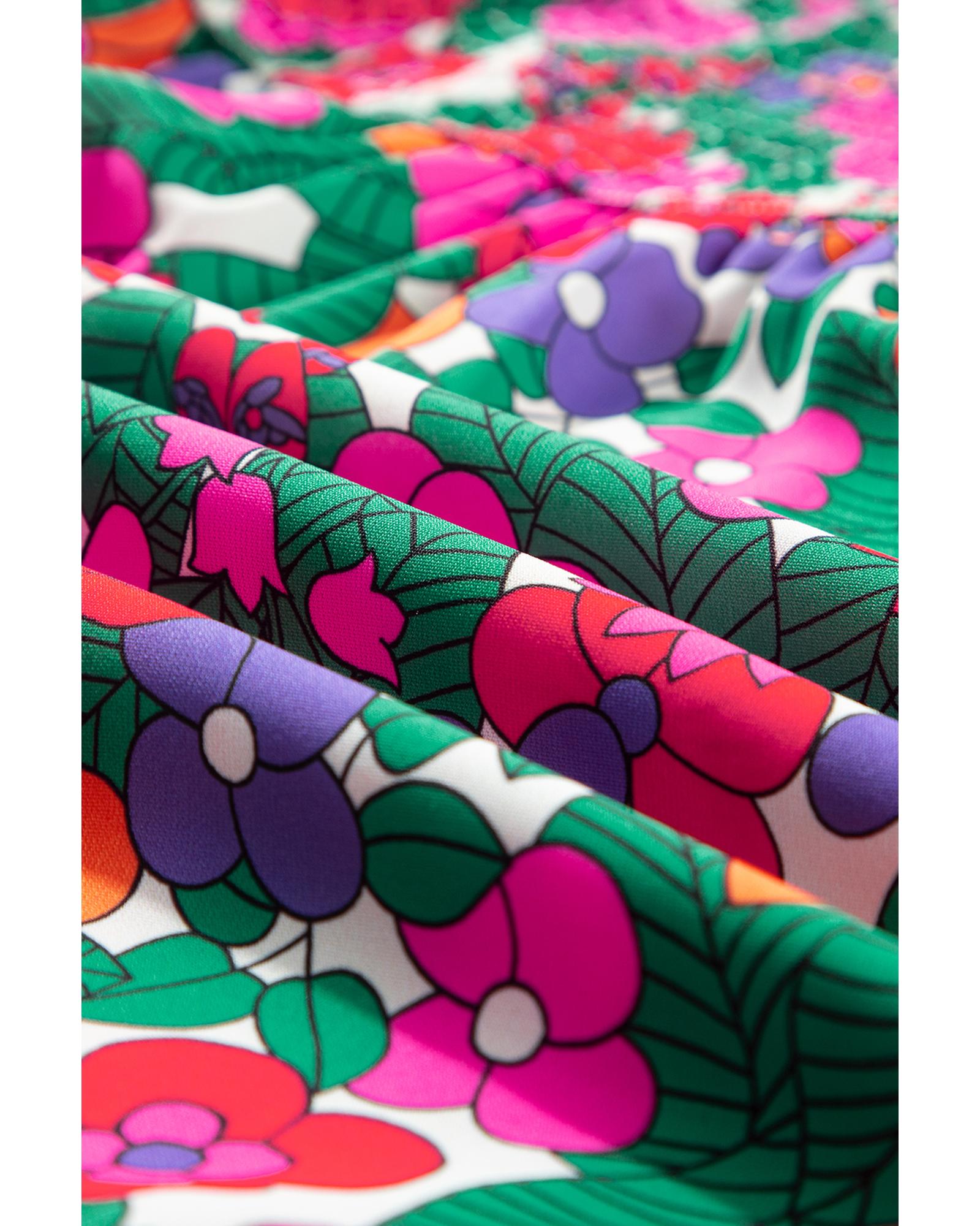 White Plus Size Floral Frilled Square Neck Shirred Long Sleeve Dress – 1X