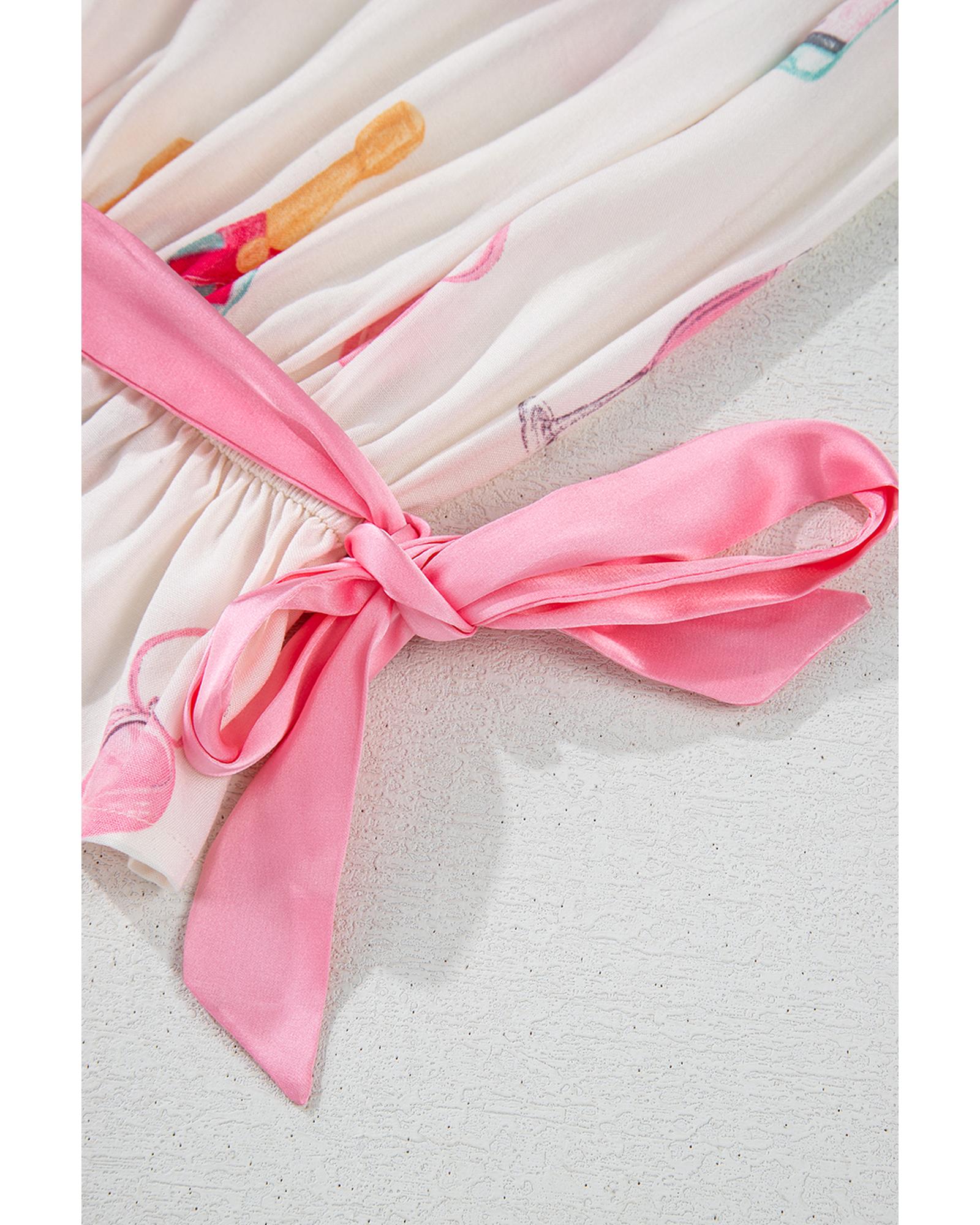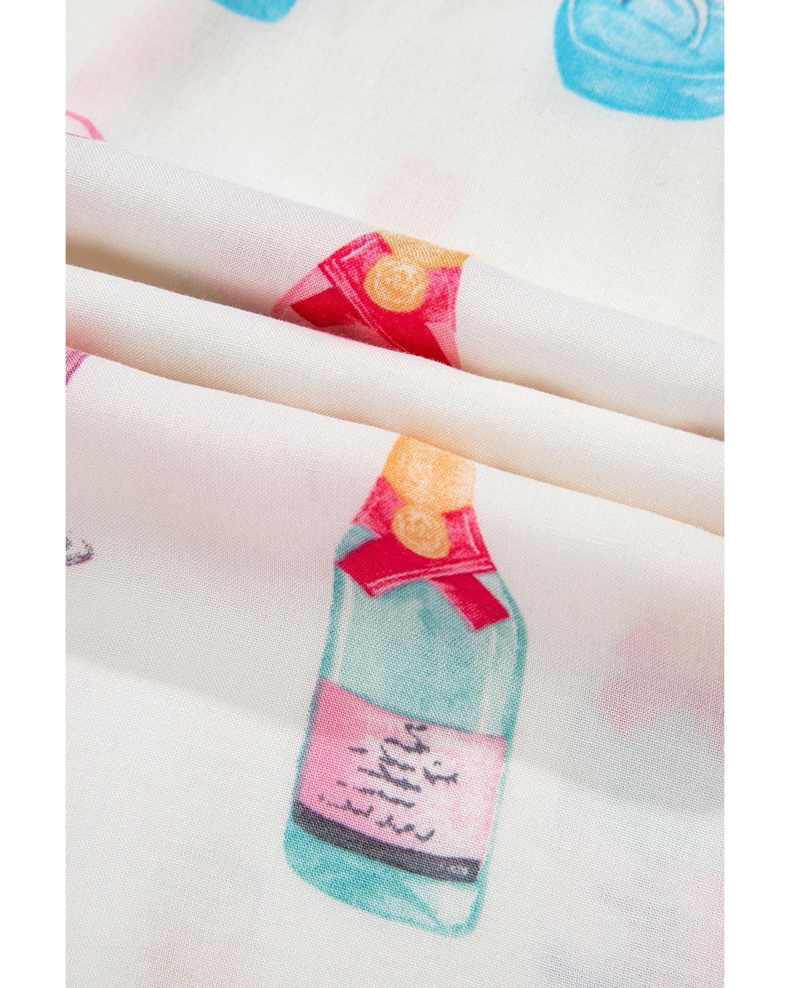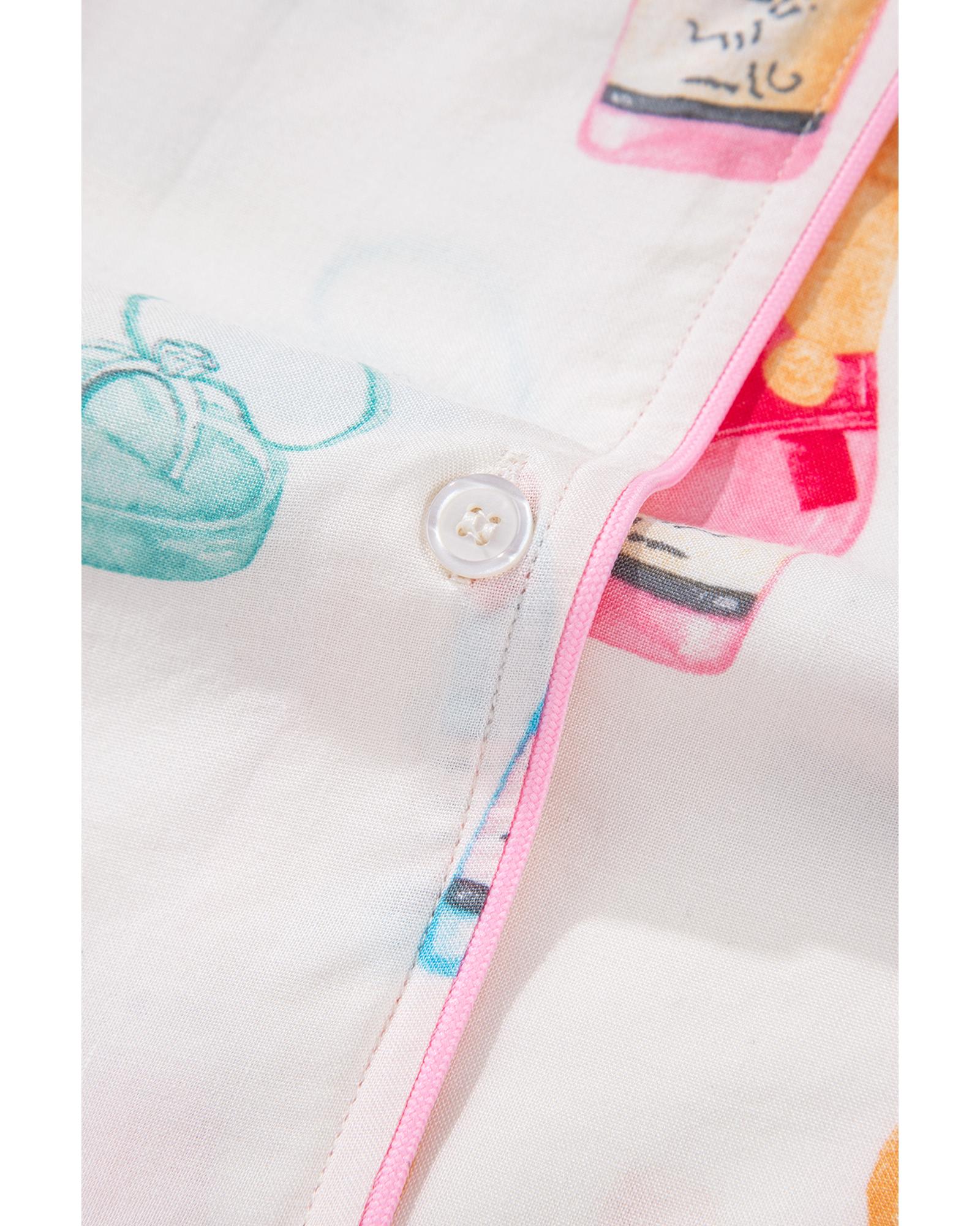 White Plus Size Wine Glass Print Bow Knot Pajama Set – 4X