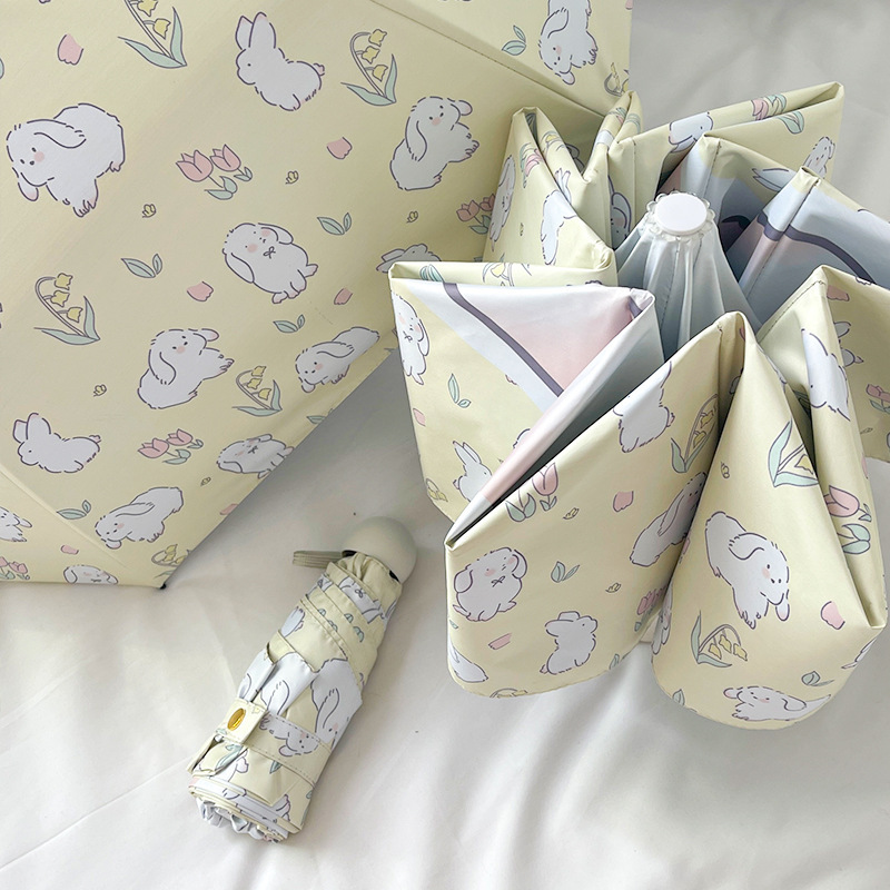 White Rabbit Mini 5-Fold Umbrella – Portable, Anti-UV, Black Glue Coating